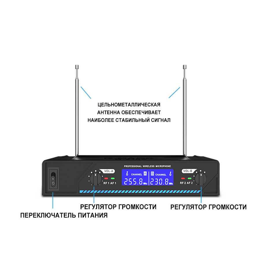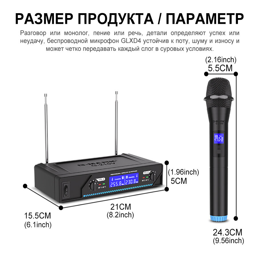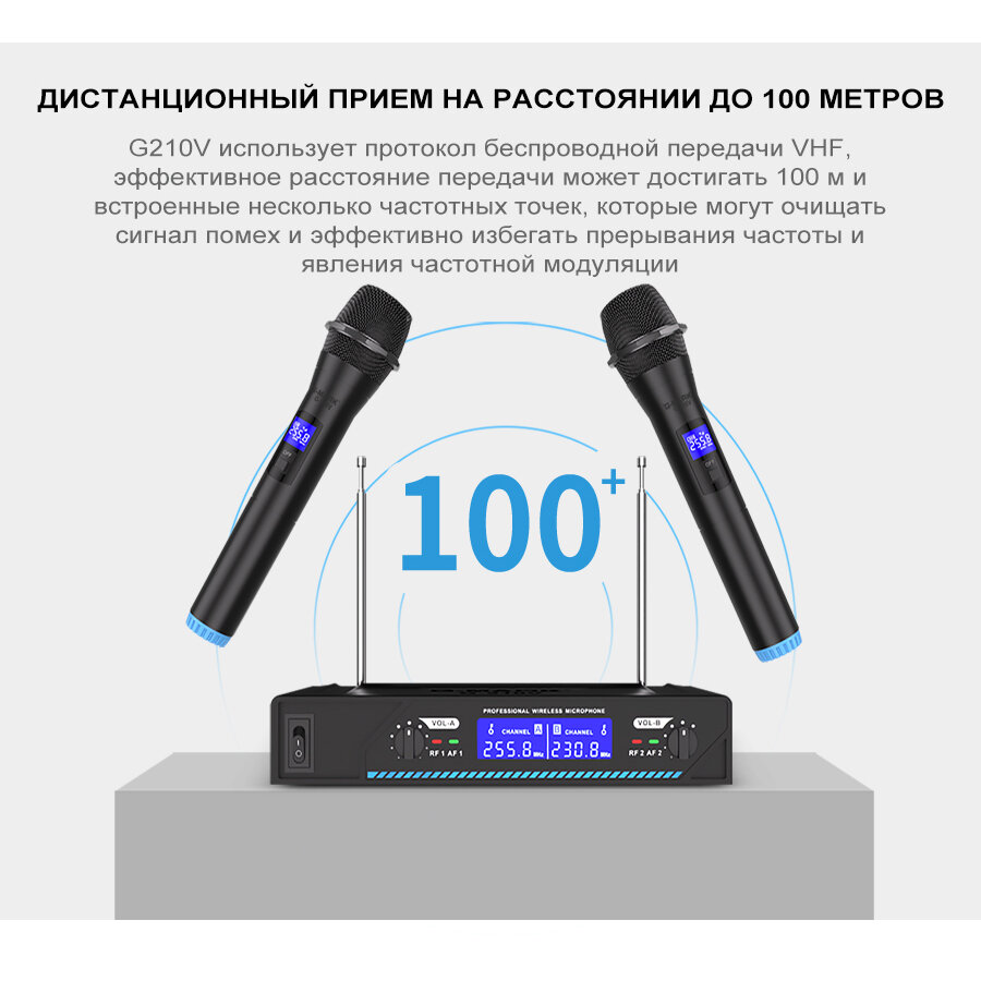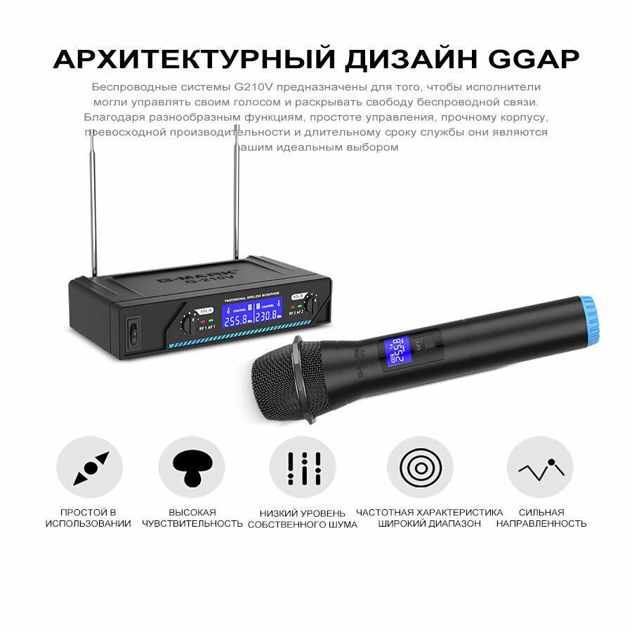 Набор беспроводных микрофонов G-mark g210 2-канальный VHF черный интересное: