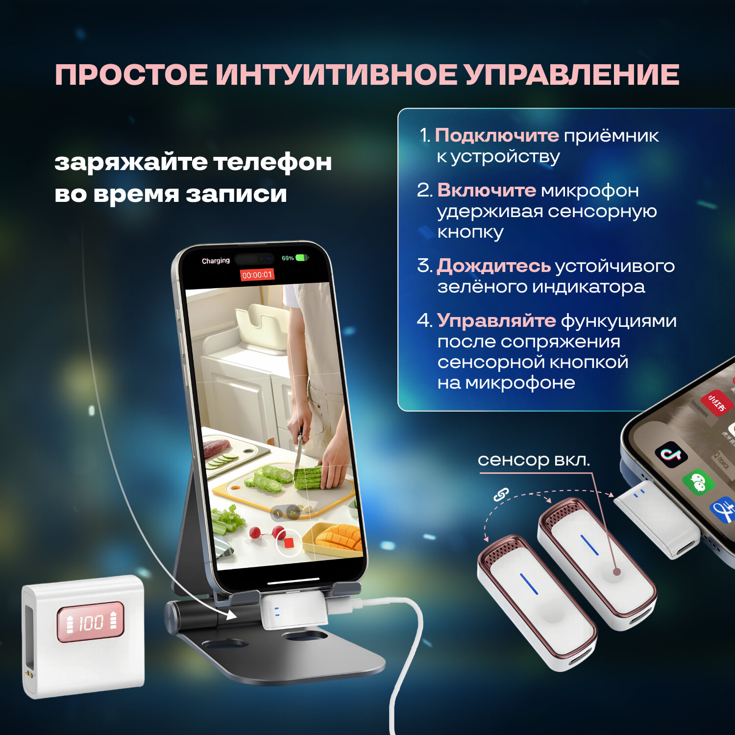 Микрофон петличный беспроводной, с шумоподавлением, петличка, для мобильного телефона, разъем Lightning, для Iphone, черный, 2шт