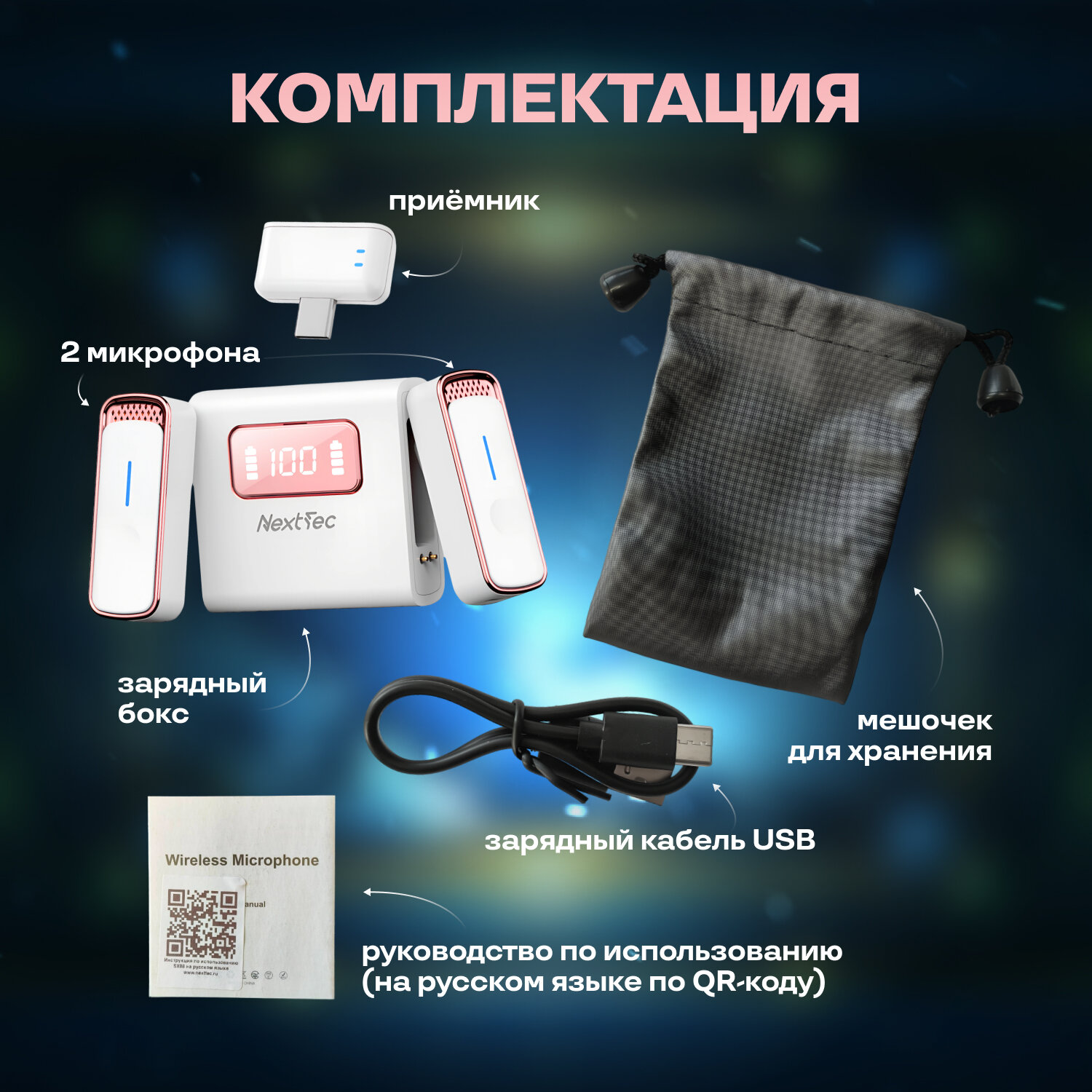 Микрофон NextTec беспроводной петличный для Apple IPhone, Розовый