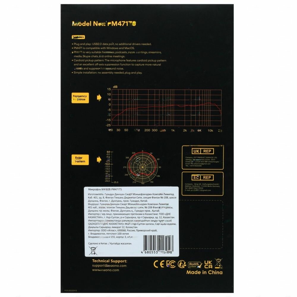 Конденсаторный настольный микрофон Maono PM471TS, черный, 2 м кабель, питание по usb интересное: