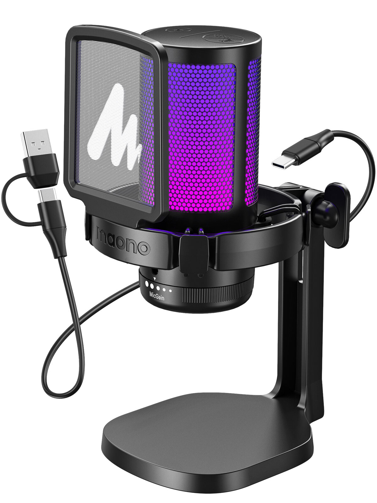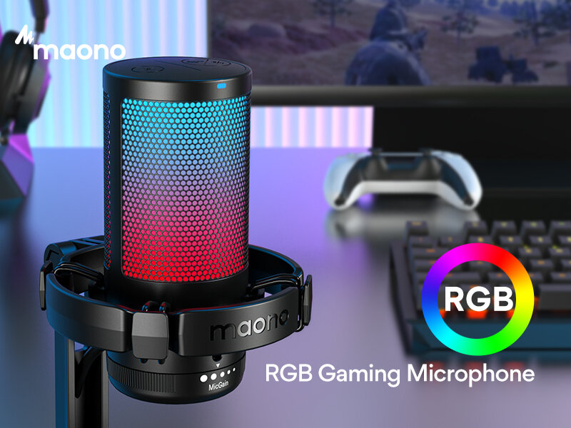 Микрофон MAONO DGM20S, с пантографом, конденсаторный, USB, с RGB подсветкой, черный