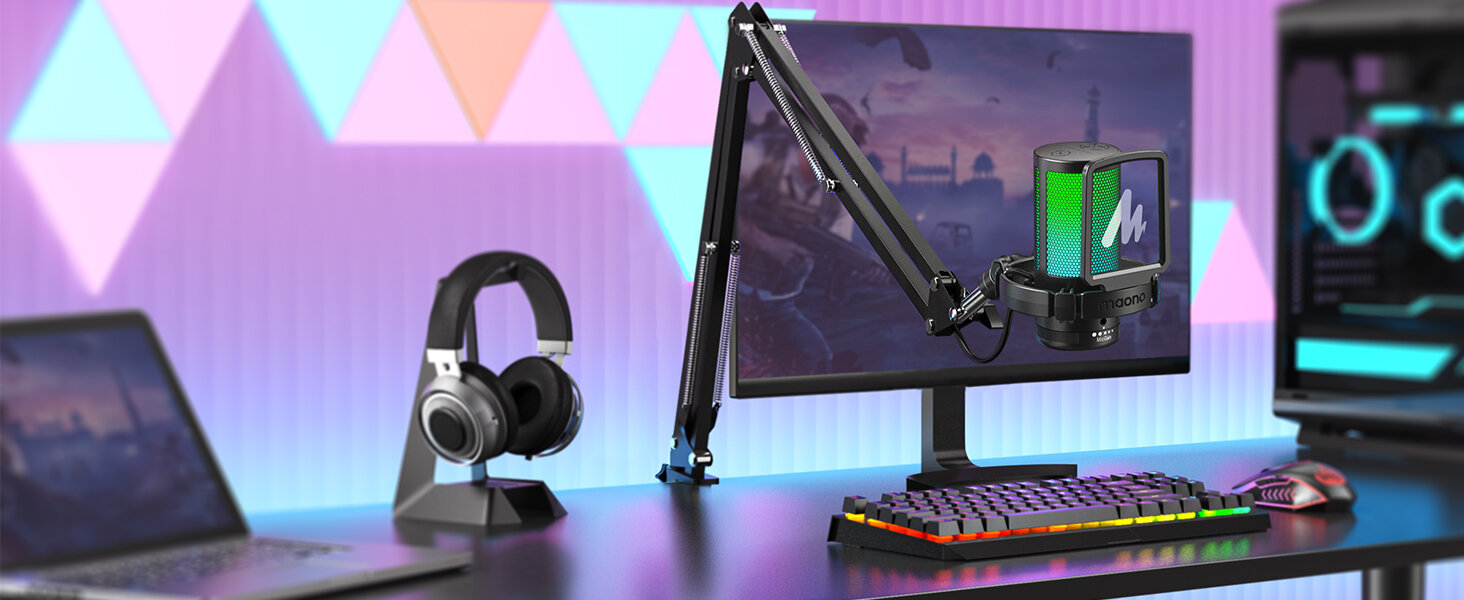 Купить Микрофон MAONO DGM20S, с пантографом, конденсаторный, USB, с RGB подсветкой, черный