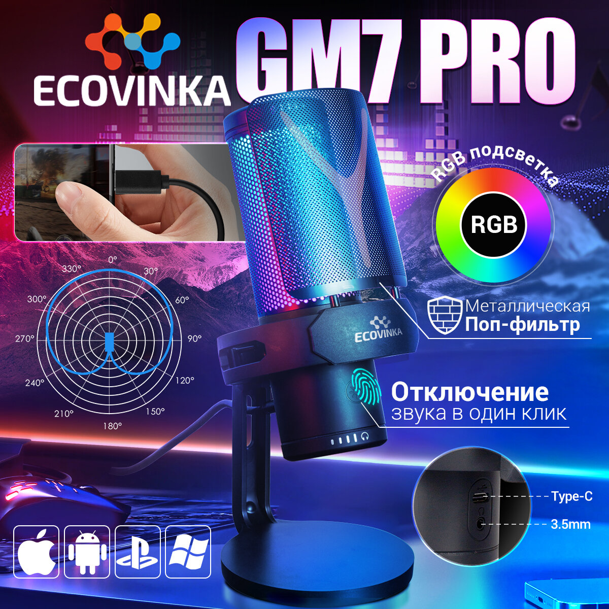 Микрофон для для компьютера игровой ECOVINKA GM7 PRO, RGB-подсветкой, Совместим с монитором ECONINKA FT27A Pro интересное: