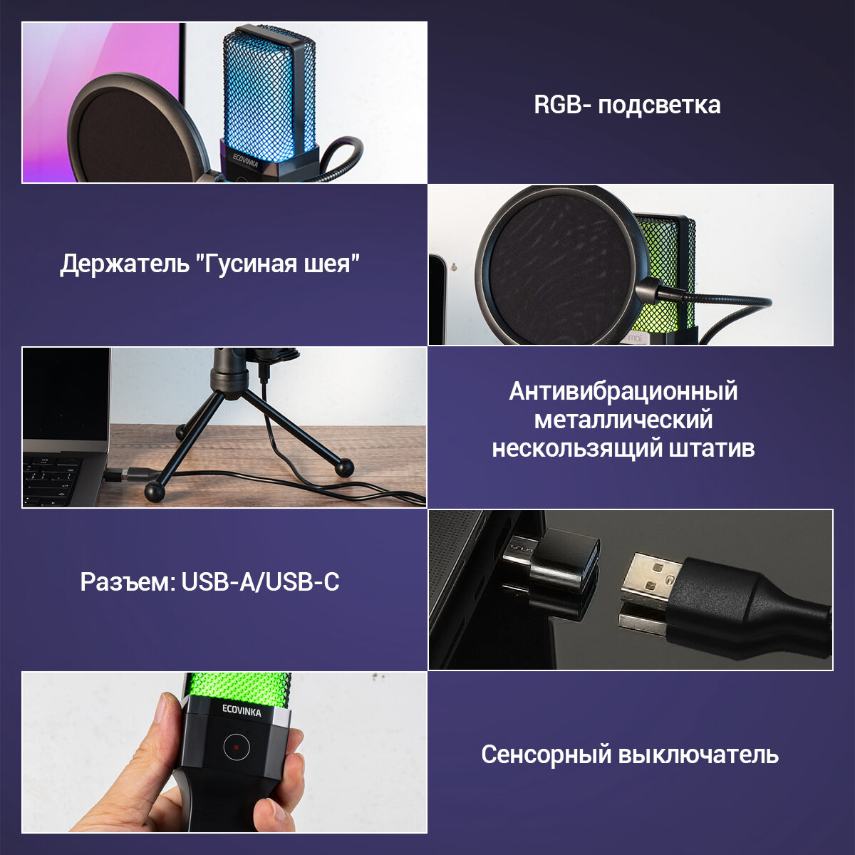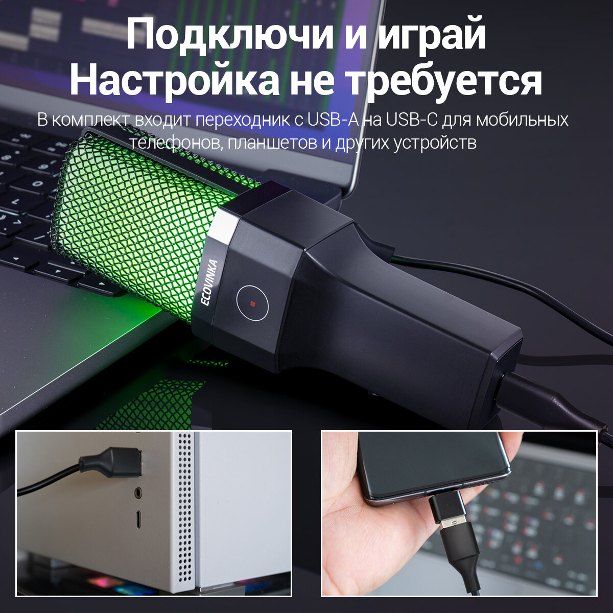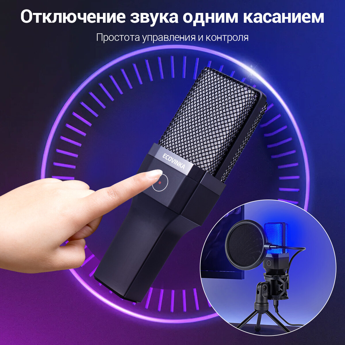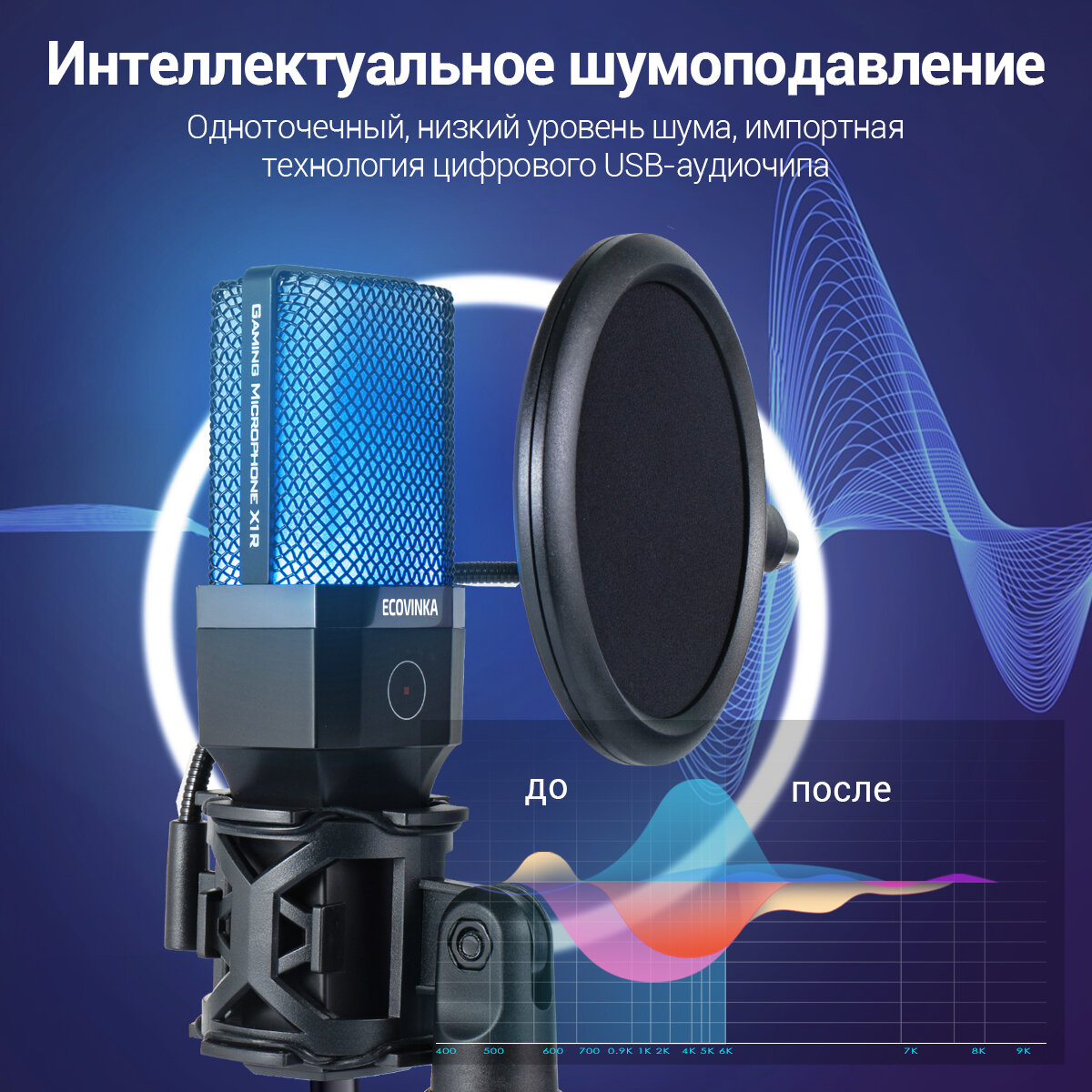 Микрофон для для компьютера игровой ECOVINKA X1R,Подходит игрокам,Совместим с монитором ECONINKA FT27A Pro интересное: