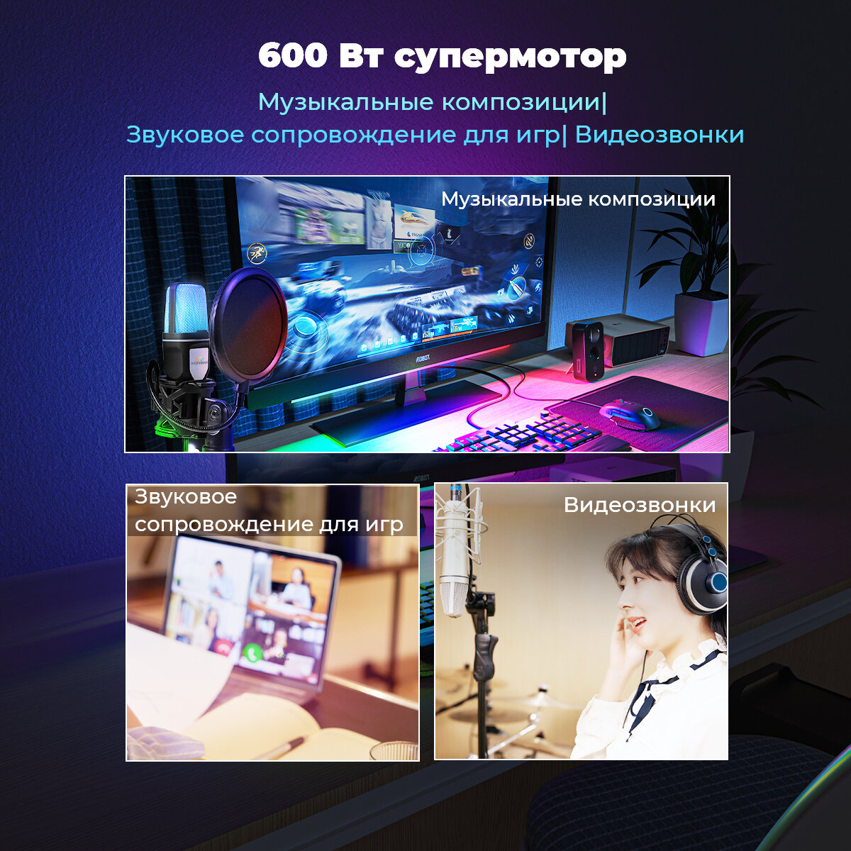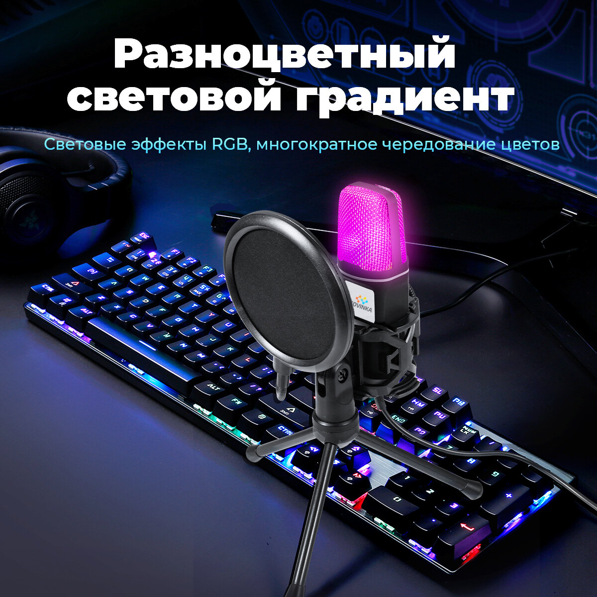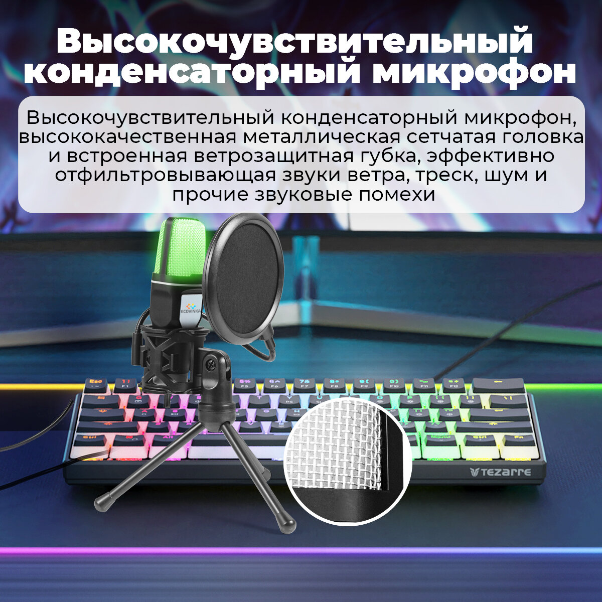 Микрофон для для компьютера игровой ECOVINKA GM7 PRO, RGB-подсветкой, Совместим с монитором ECONINKA FT27A Pro