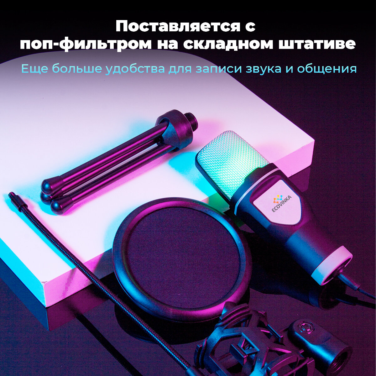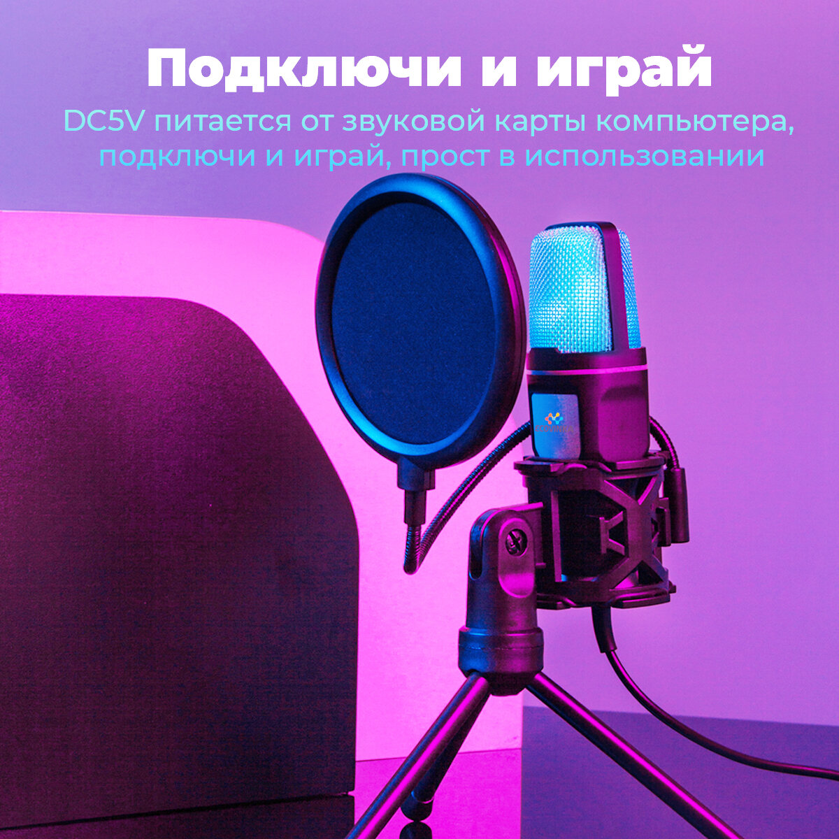 Компьютерный микрофон Ecovinka SF-666R RGB С USB-разъемом,Всенаправленный,черный интересное: