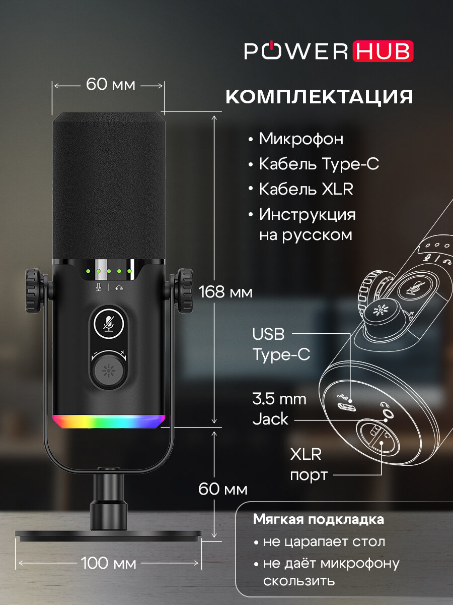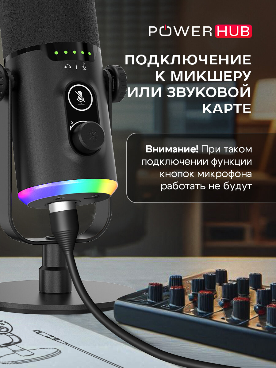Микрофон студийный игровой чёрный для ПК/iPhone/Android с RGB-подсветкой интересное: