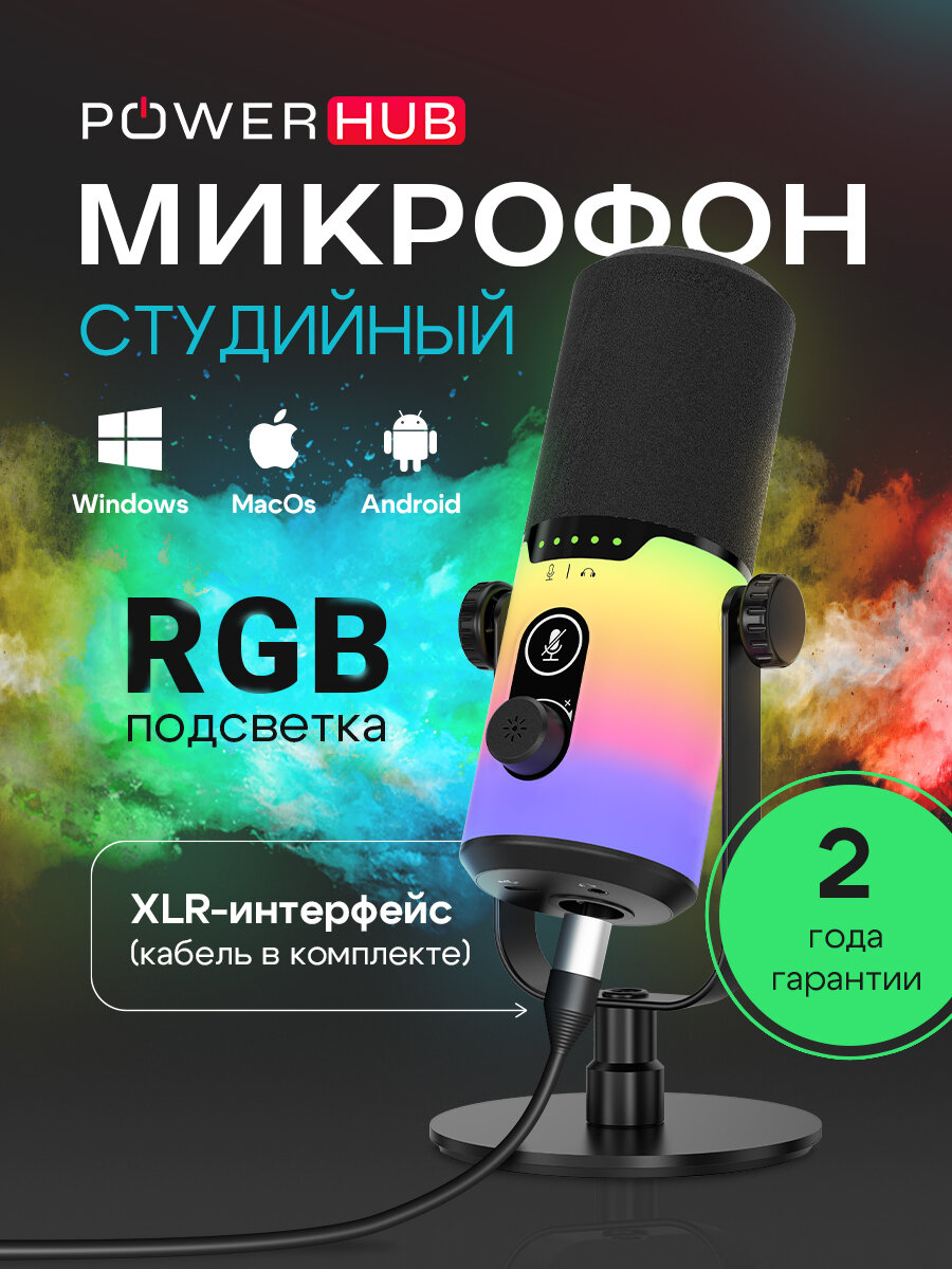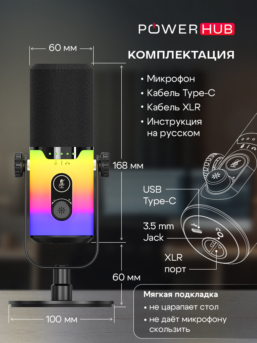 Микрофон студийный конденсаторный для ПК/iPhone/Android с RGB-подсветкой интересное: