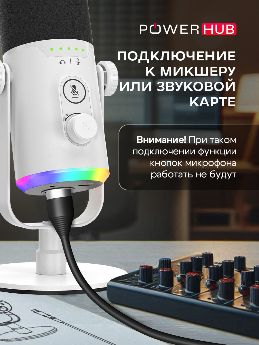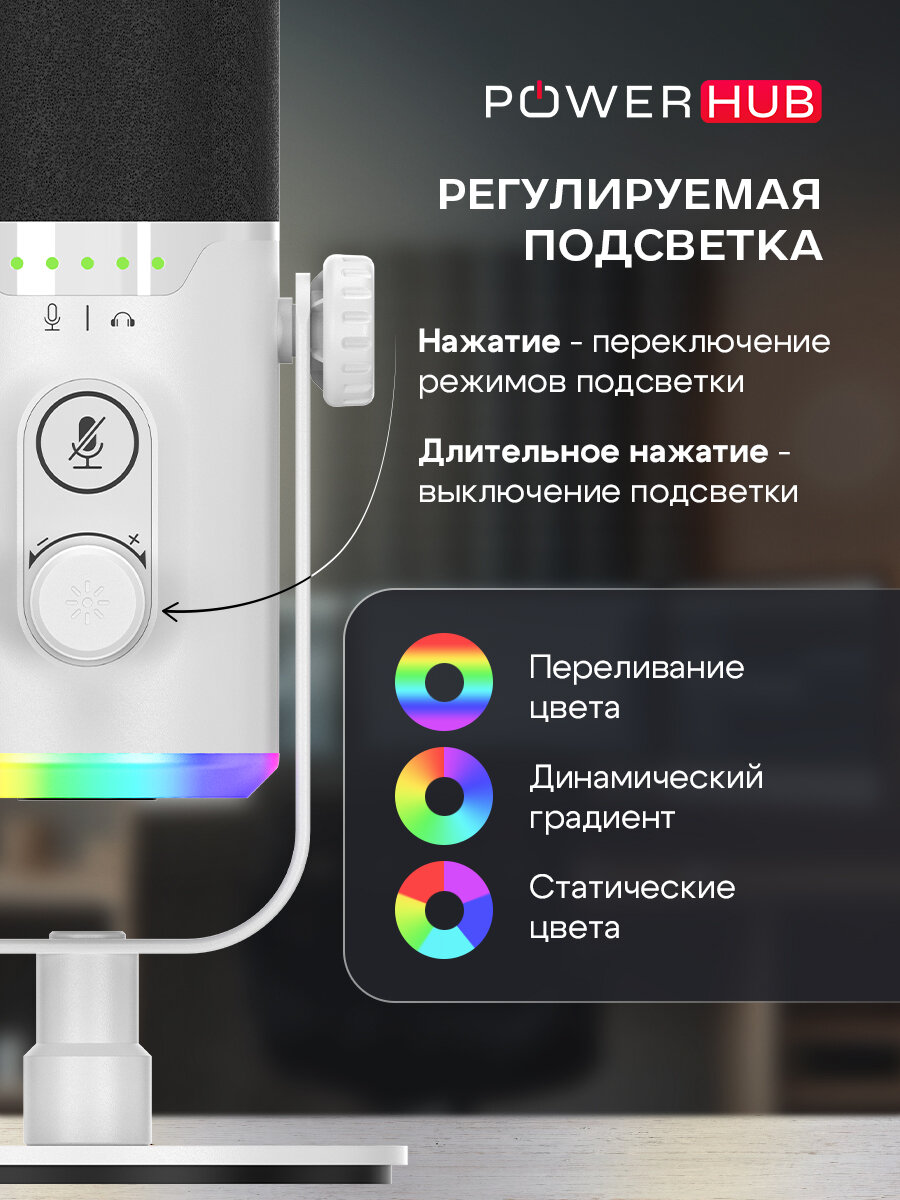 Микрофон студийный игровой белый для ПК/iPhone/Android с RGB-подсветкой интересное: