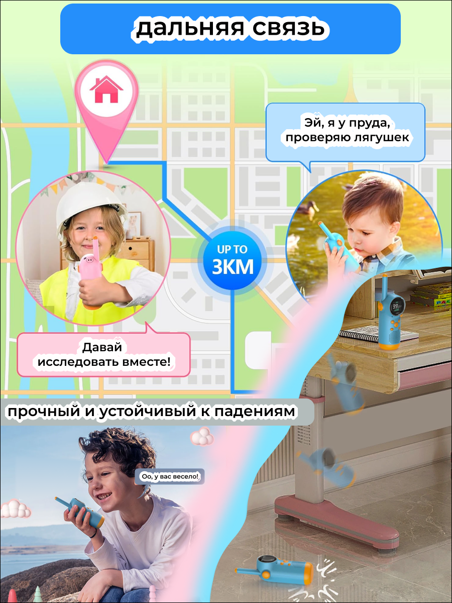 Рации ArtHouse3D, для детей, 2 канала, 2 штуки, встроенные аккумуляторы интересное: