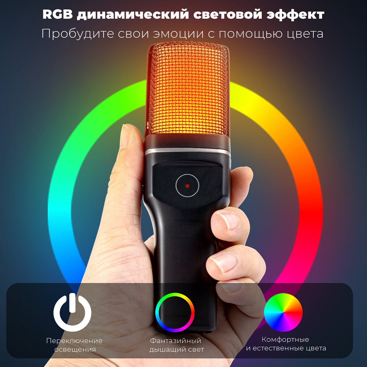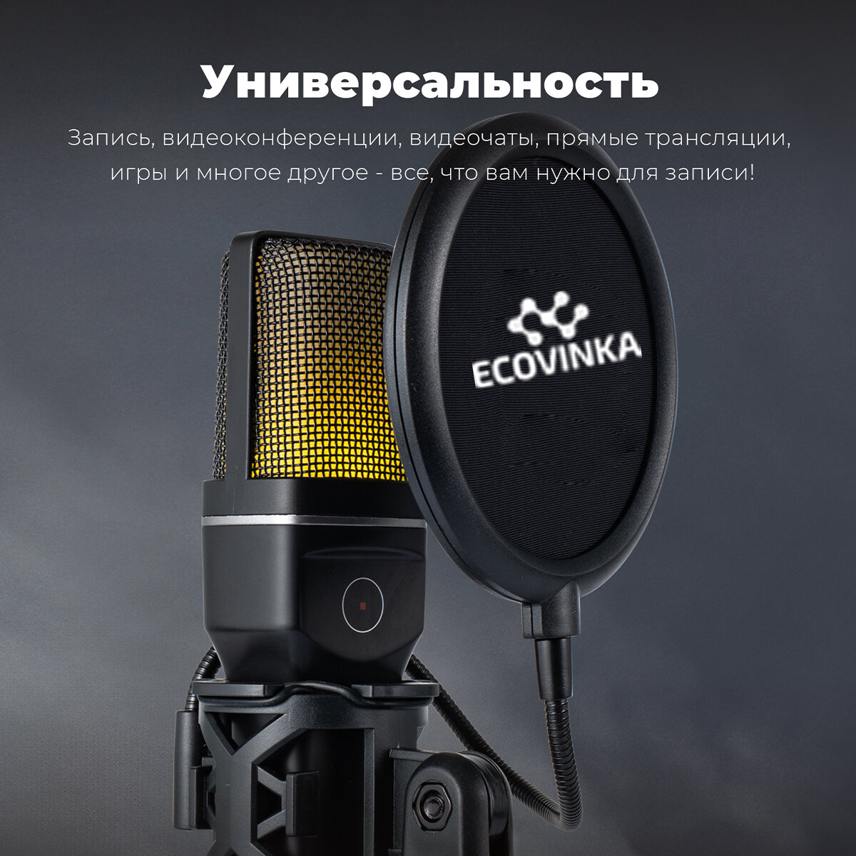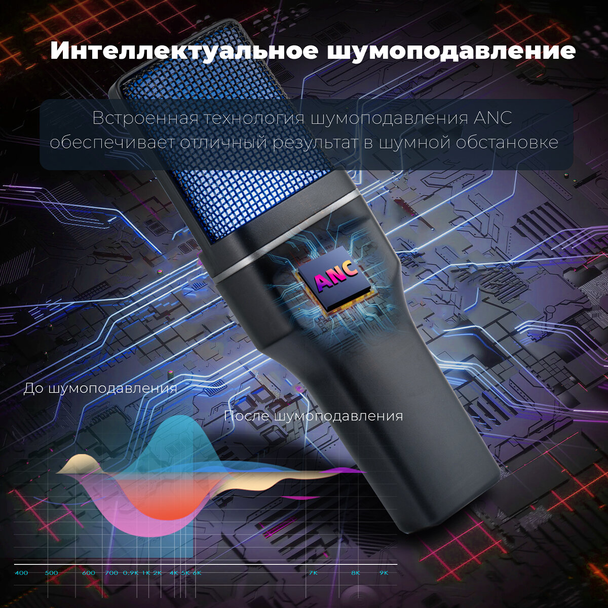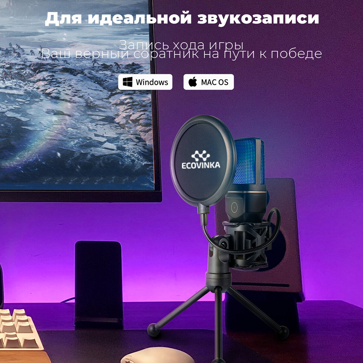 Микрофон для для компьютера игровой ECOVINKA GM7 с RGB подсветкой Аналог Fifine AmpliGame A8