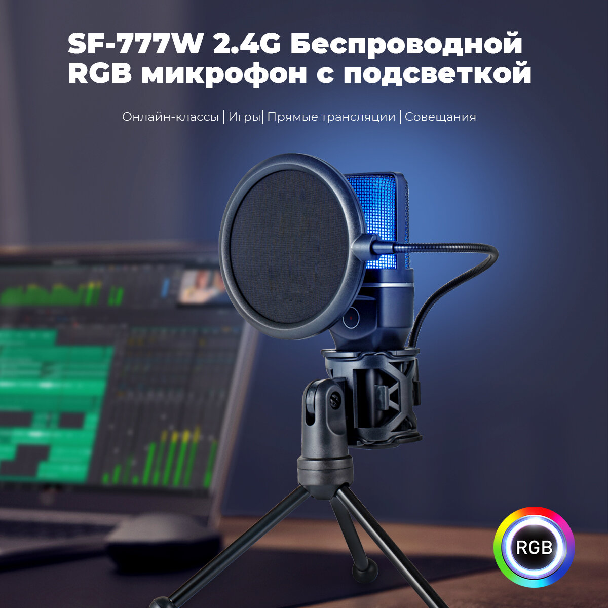 Микрофон для для компьютера игровой ECOVINKA SF-777W, беспроводное соединение, Совместим с монитором ECONINKA FT27A Pro интересное: