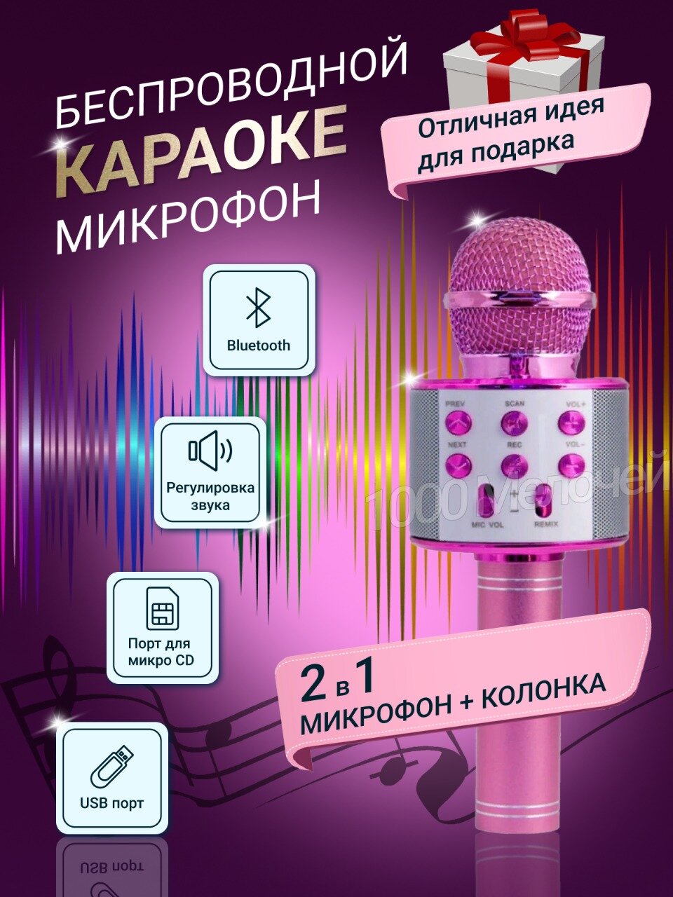 Микрофон для караоке беспроводной детский с колонкой блютуз для детей и взрослых интересное:
