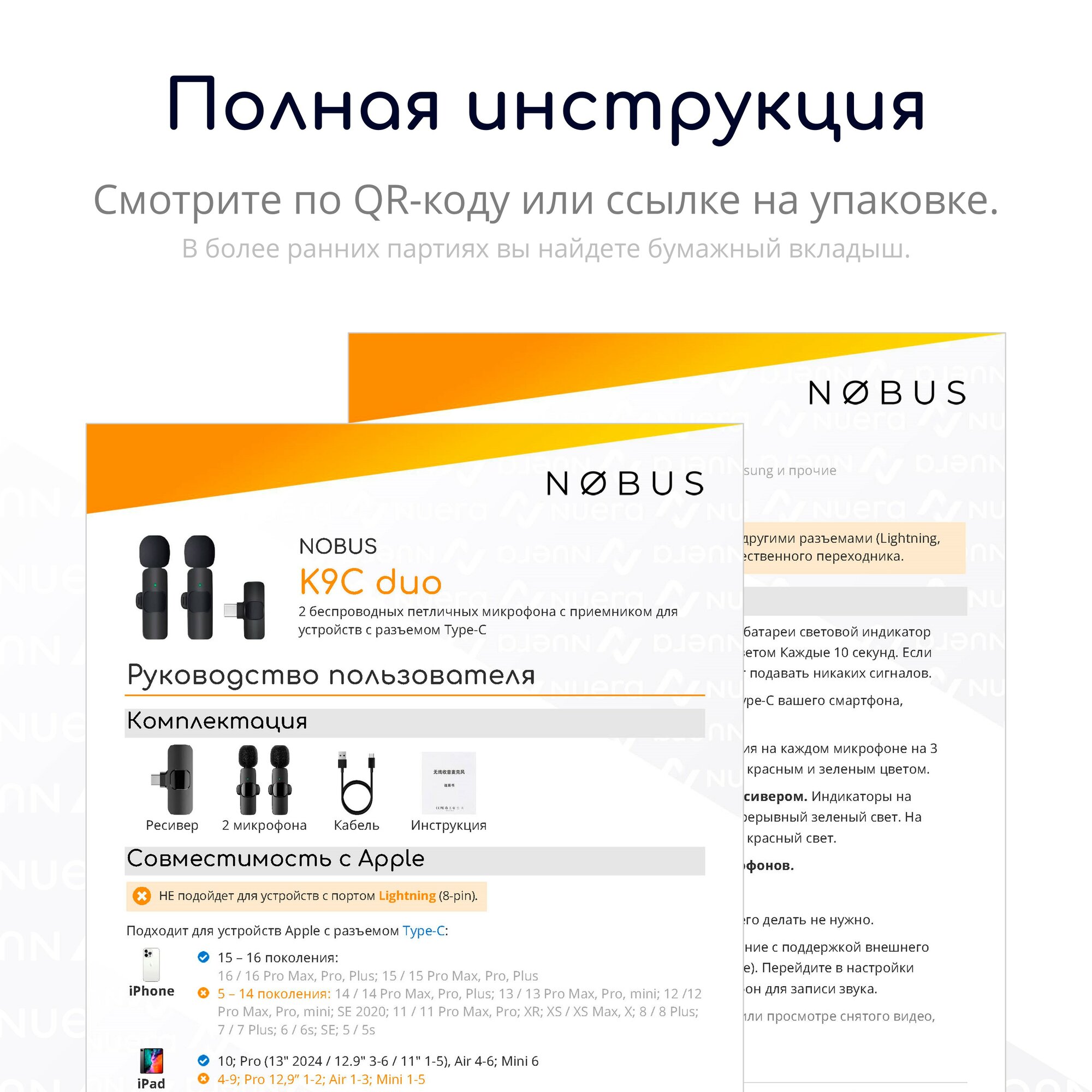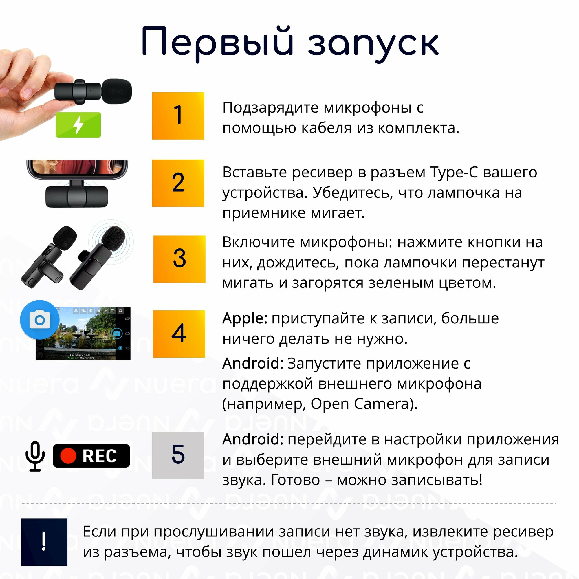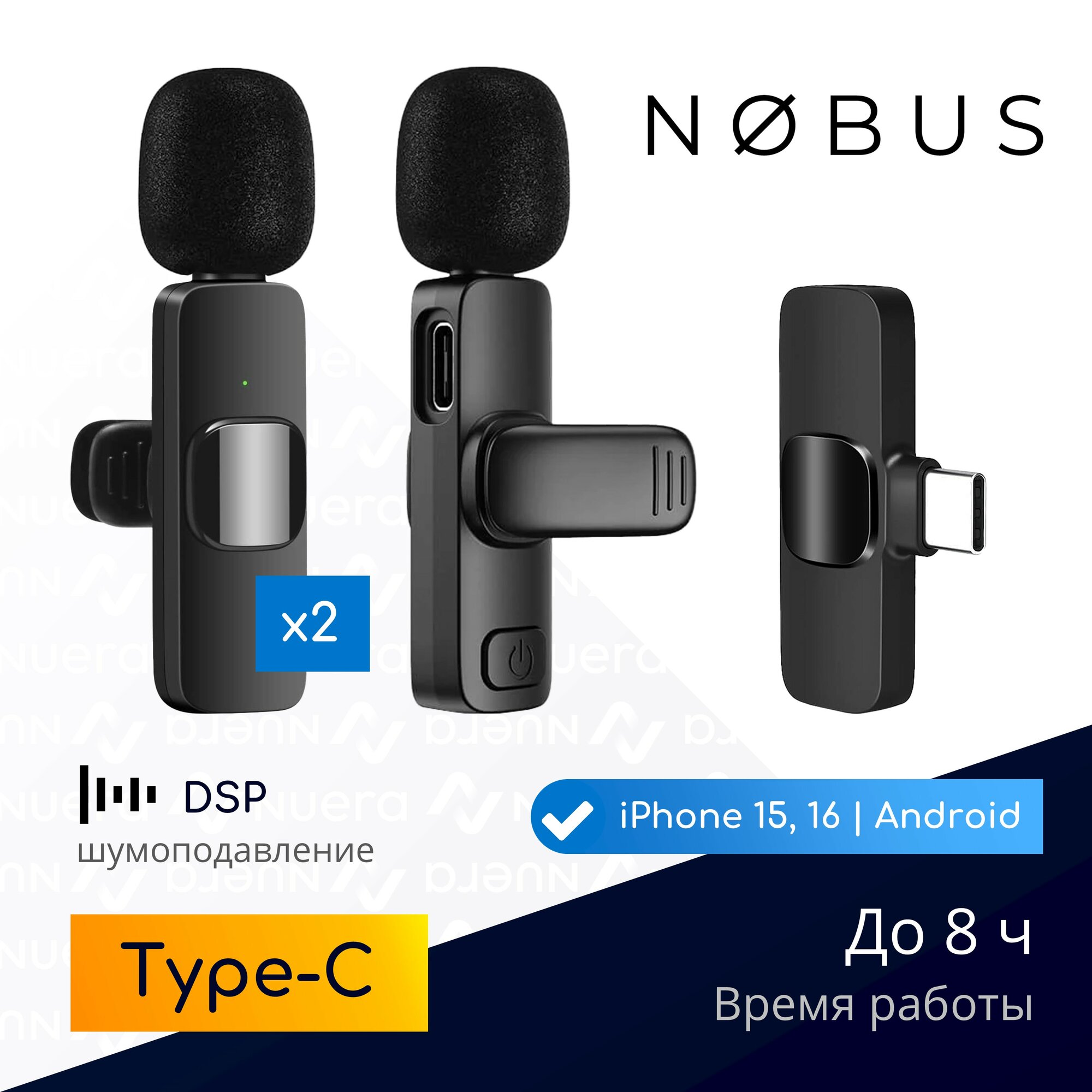Купить NOBUS K9C duo / 2 беспроводных петличных микрофона с шумоподавлением, Type-C / для iPhone 16, 15 и Android / комплект