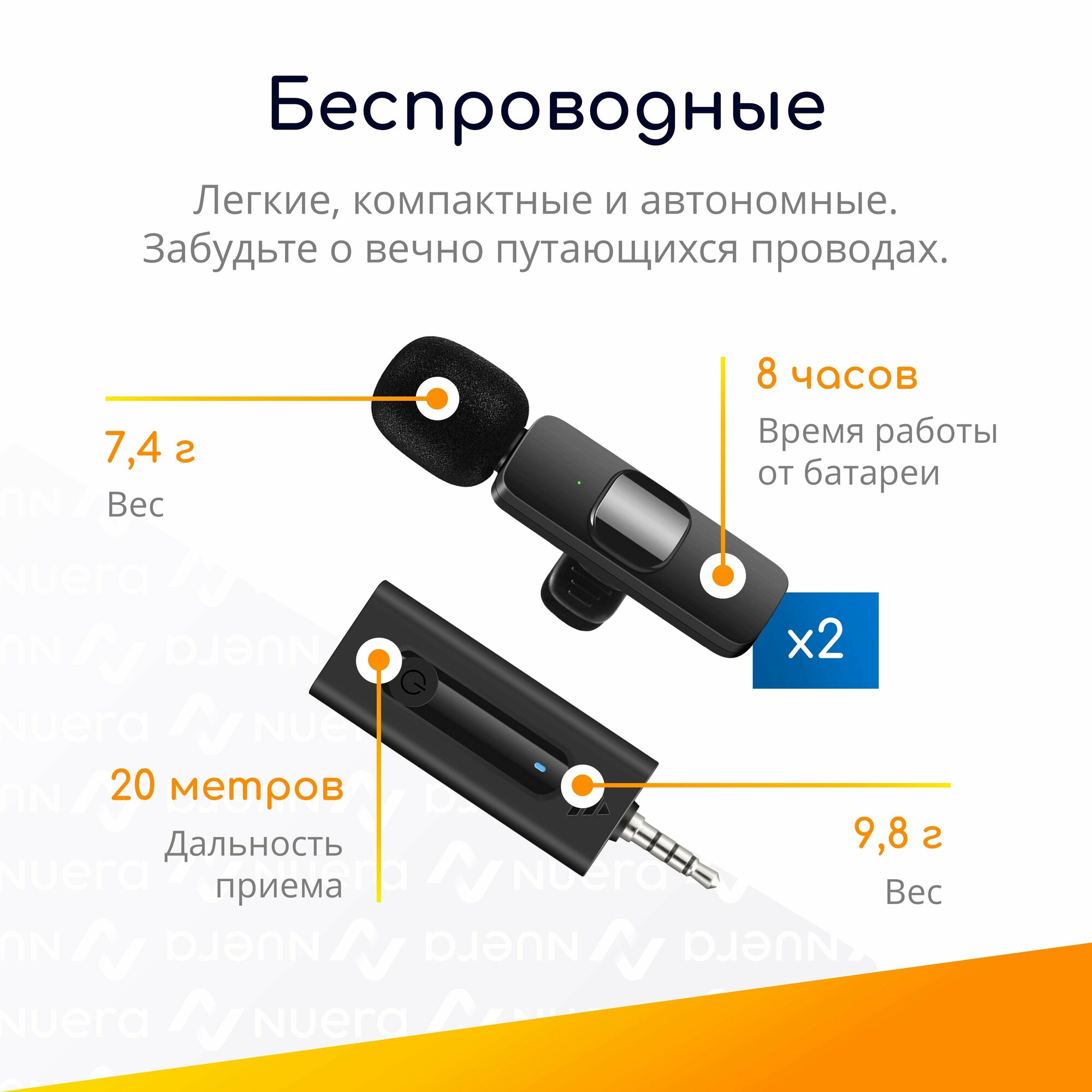Купить Комплект из 2 беспроводных петличных микрофонов NOBUS K35 duo с интерфейсом 3.5 мм и шумоподавлением, черные