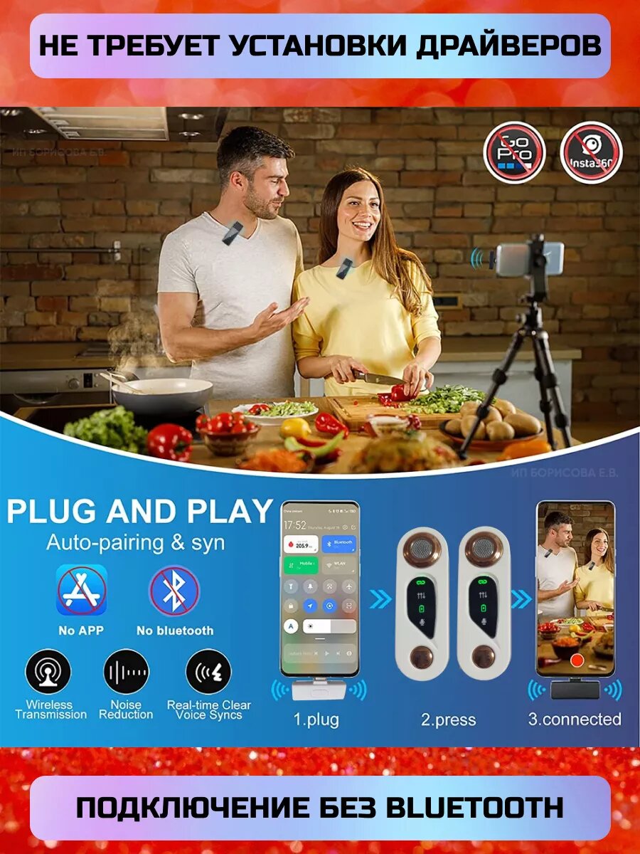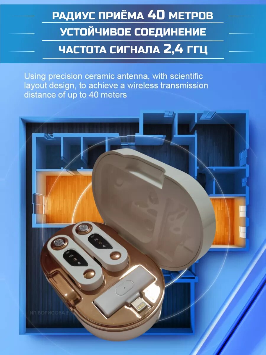 Беспроводной петличный микрофон для iPhone, 2шт, с кейсом, шумоподавление интересное: