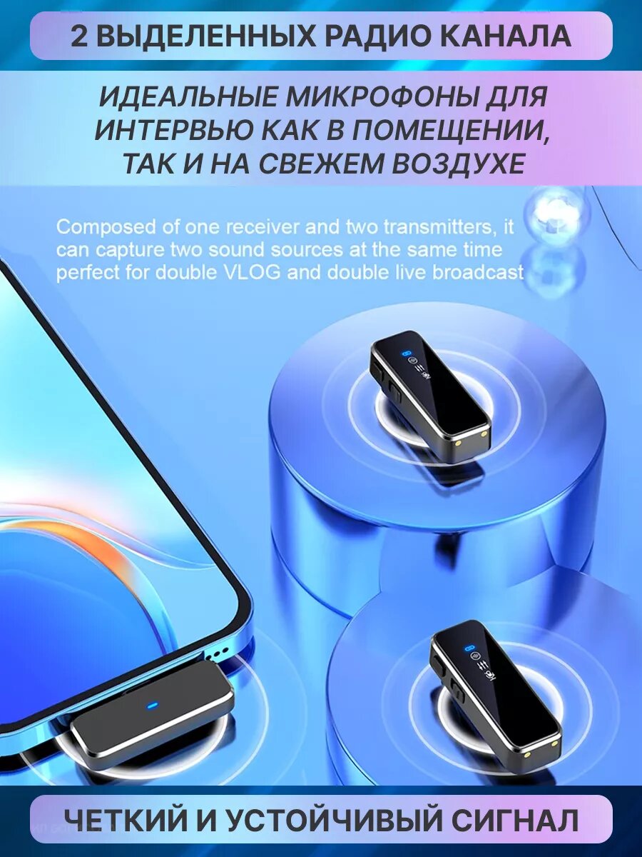 Микрофон петличный беспроводной TYPE C, 2 шт, android, iphone 15