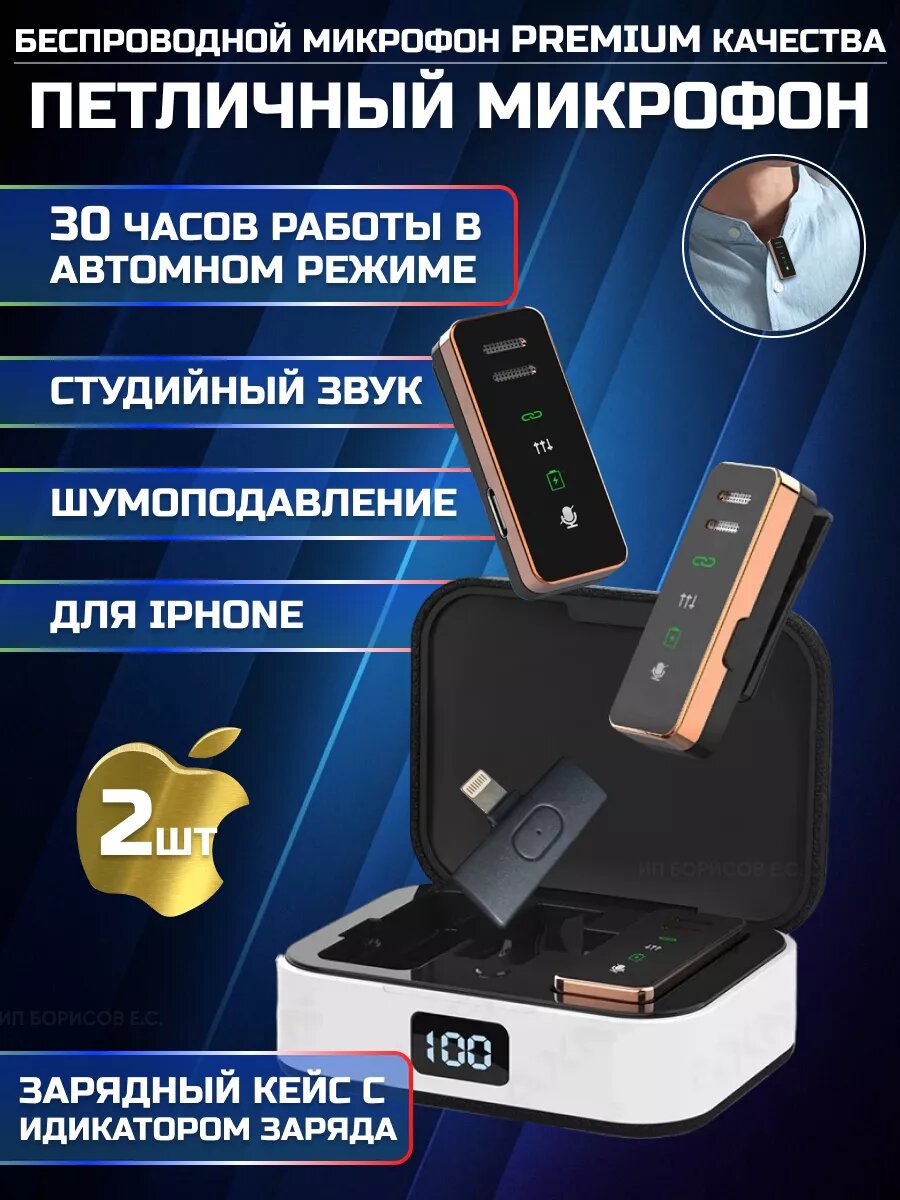 Петличный микрофон с шумоподавлением, для iPhone, 2 микрофона, с зарядным кейсом интересное:
