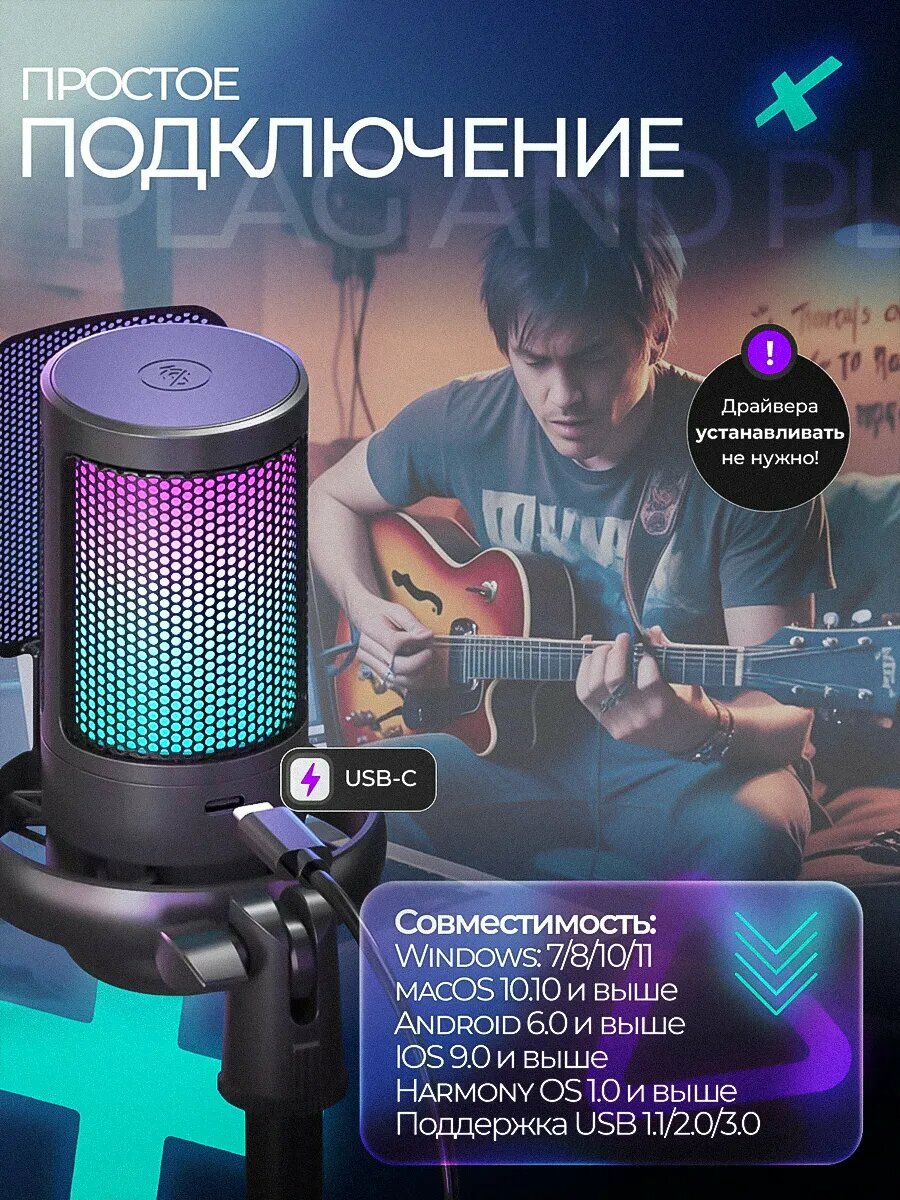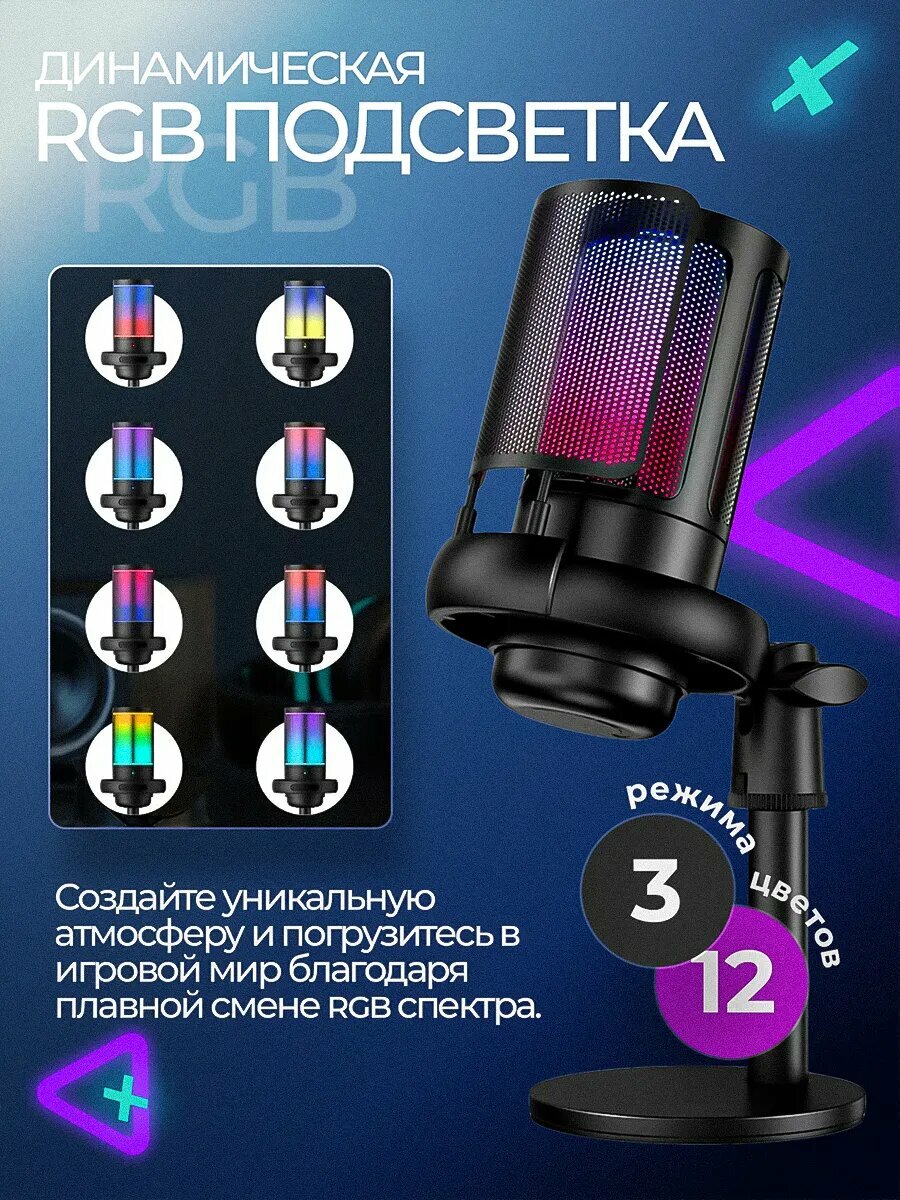 Микрофон игровой для пк iphone android RGB USB (компьютерный, игровой, для стримов. черный) интересное: