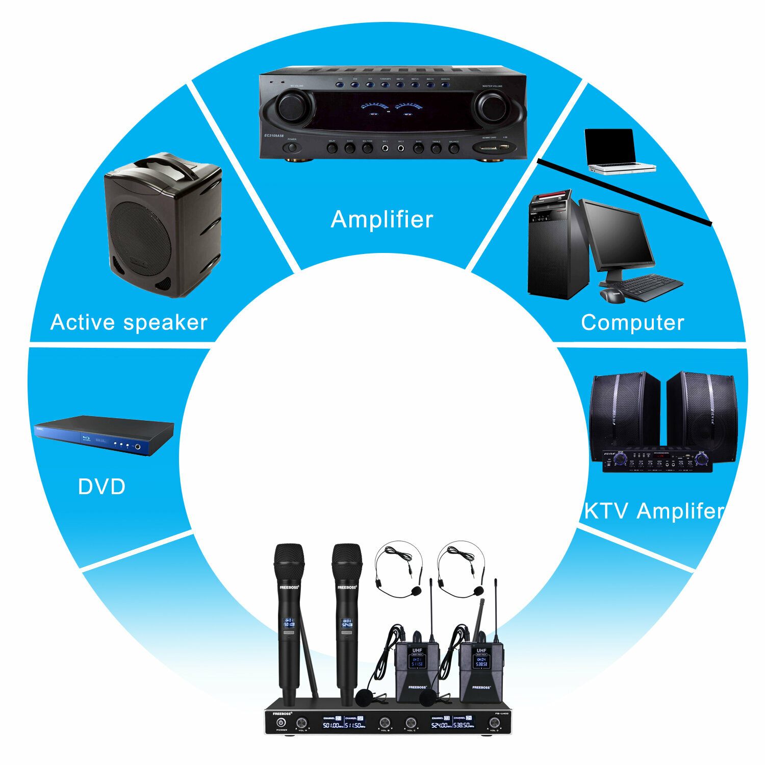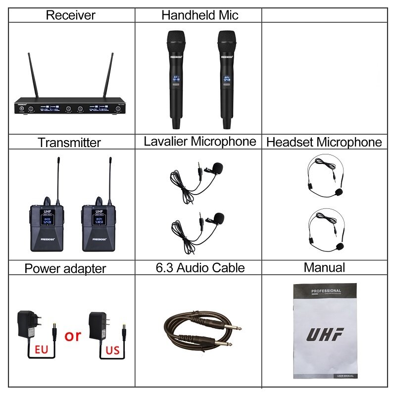 4-канальная беспроводная микрофонная система UHF с 2 поясными микрофонами и 2 ручными микрофонами FB-U400H2 интересное: