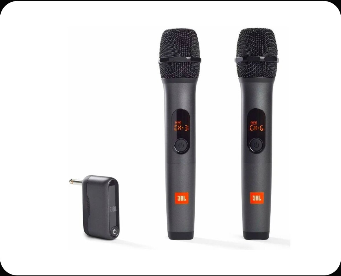 Комплект беспроводных микрофонов JBL Wireless Microphone Set MIC-2, радиосистема для вокала и караоке со встроенным аккумулятором, 2 шт. + ресивер интересное: