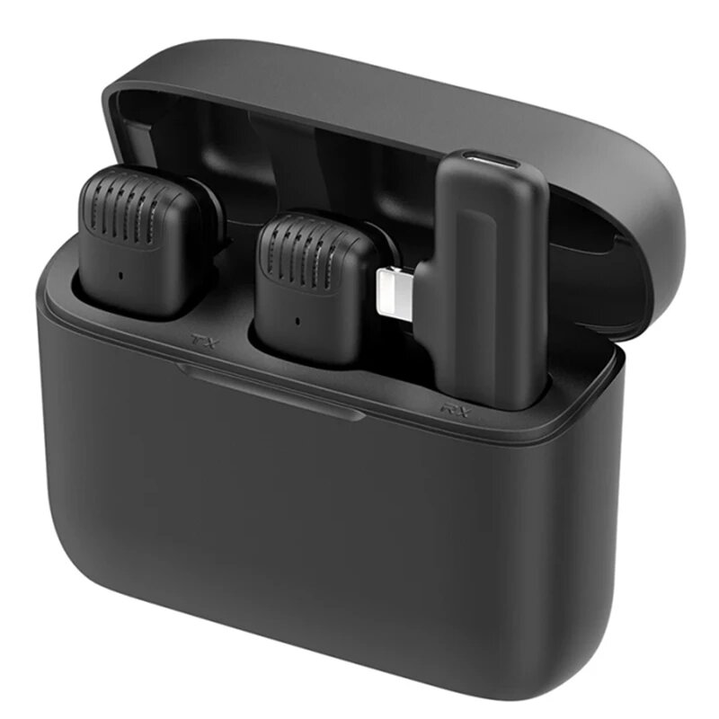 Микрофон петличный беспроводной, с шумоподавлением, петличка, для мобильного телефона, разъем Lightning, для Iphone, черный, 2шт