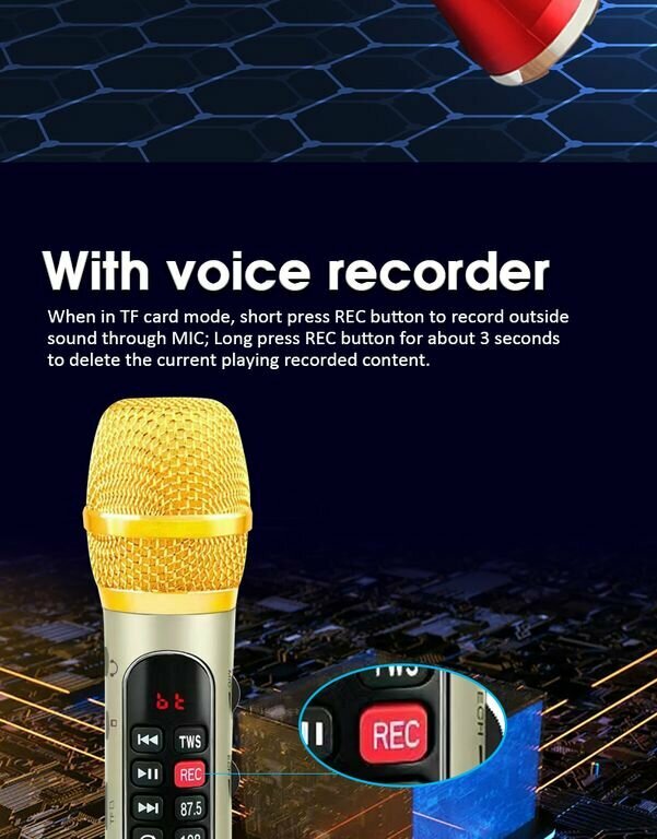 Караоке микрофон L-1098DSP 30W, беспроводной, Bluetooth, микрофон-колонка, для вокала, караоке, презентаций, золотой интересное: