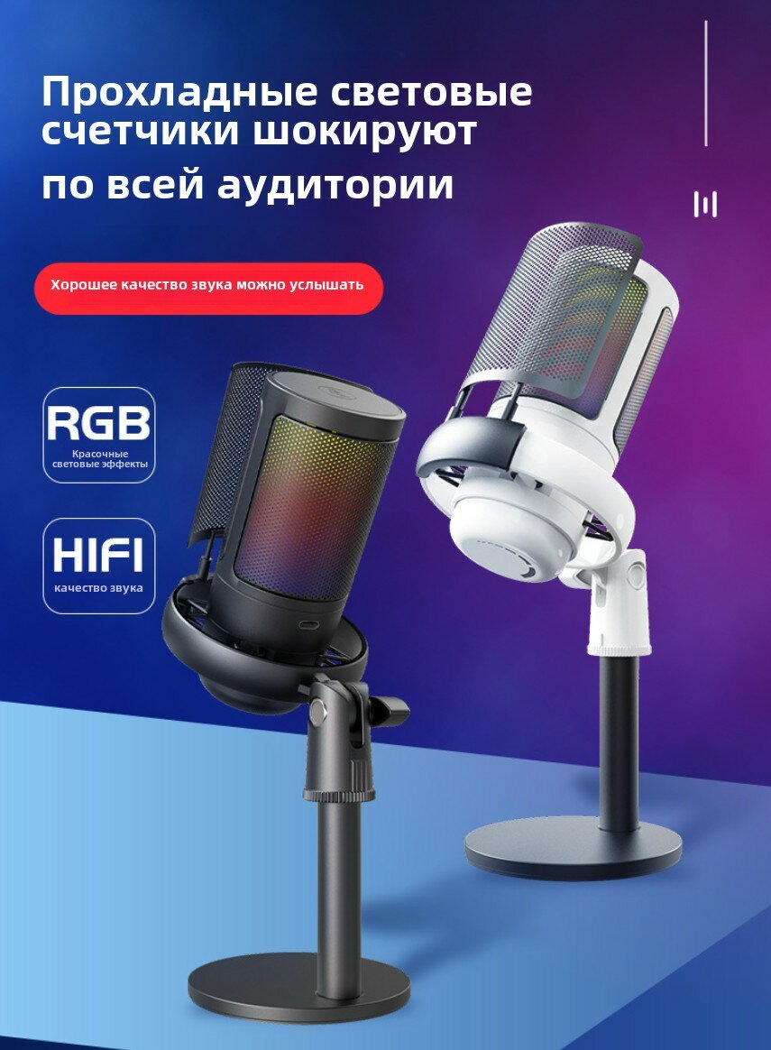 Игровой USB микрофон с RGB-подсветкой – студийный микрофон для компьютера и ПК, стримов, Zoom, OBS, Discord интересное: