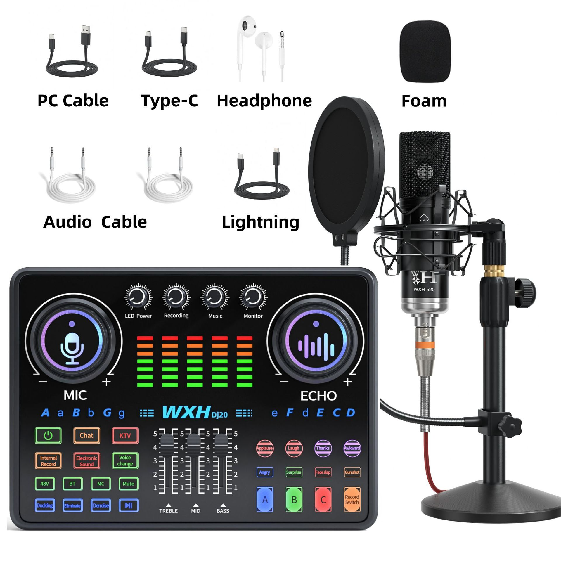 Купить Комплект для стрима и TikTok – студийный микрофон, звуковая карта и RGB лампа с держателем для телефона и ПК