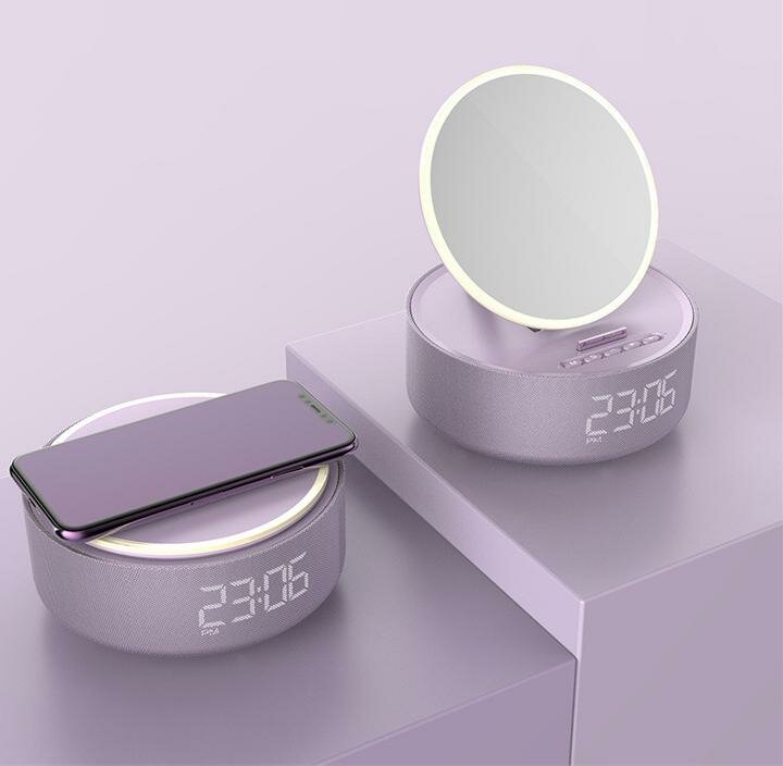 Купить Фиолетовый динамик Bluetooth, Косметические зеркала, часы, зеркало со светодиодной подсветкой, регулируемая подсветка