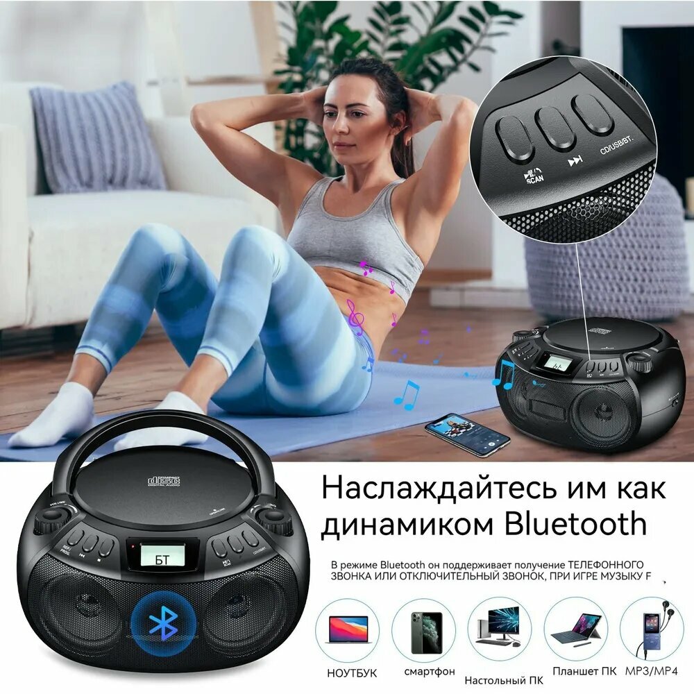 Магнитола CD Проигрыватель, Стерео звуковой динамик, черный интересное:
