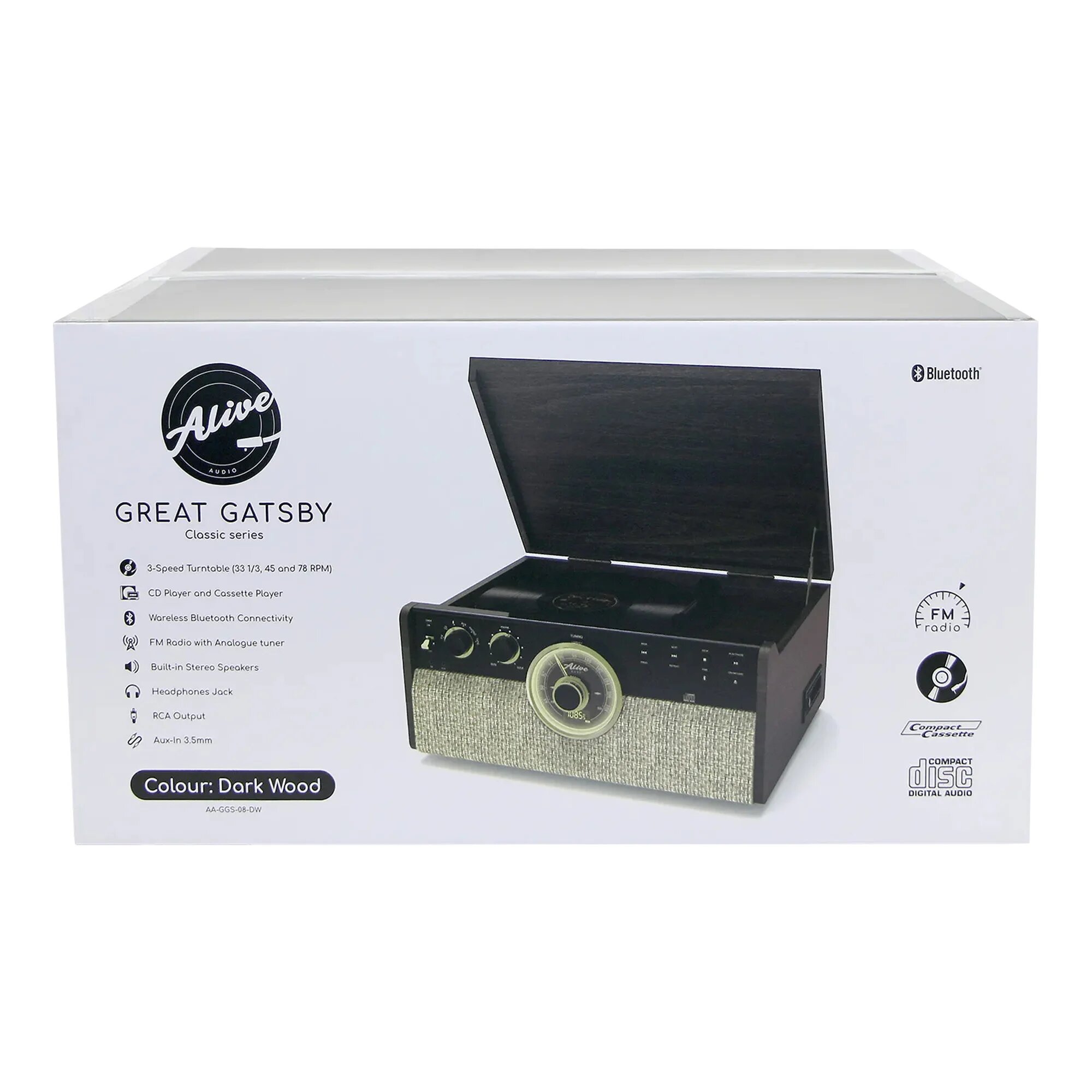 Купить Виниловый проигрыватель "Great Gatsby" Alive Audio, встроенный CD/FM/кассетник, автостоп, dark wood