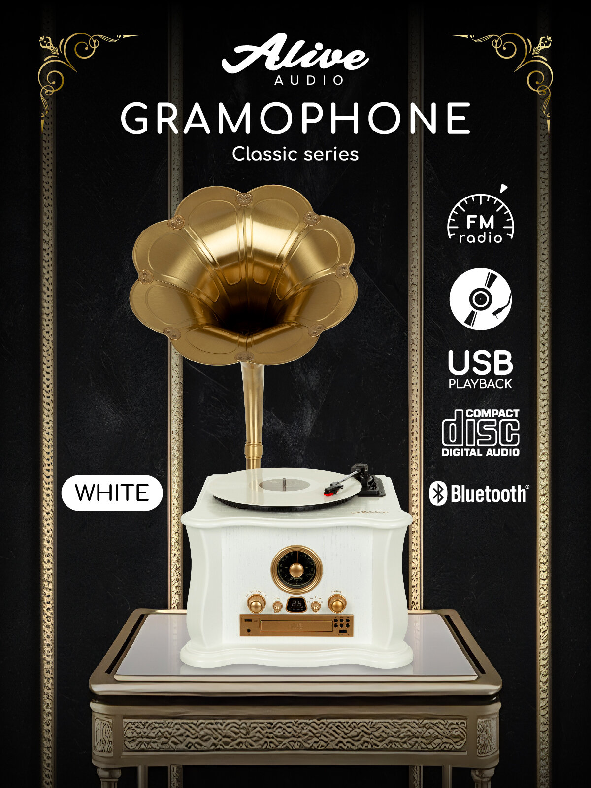 Купить Виниловый проигрыватель Alive Audio Gramophone White (набор 2в1)