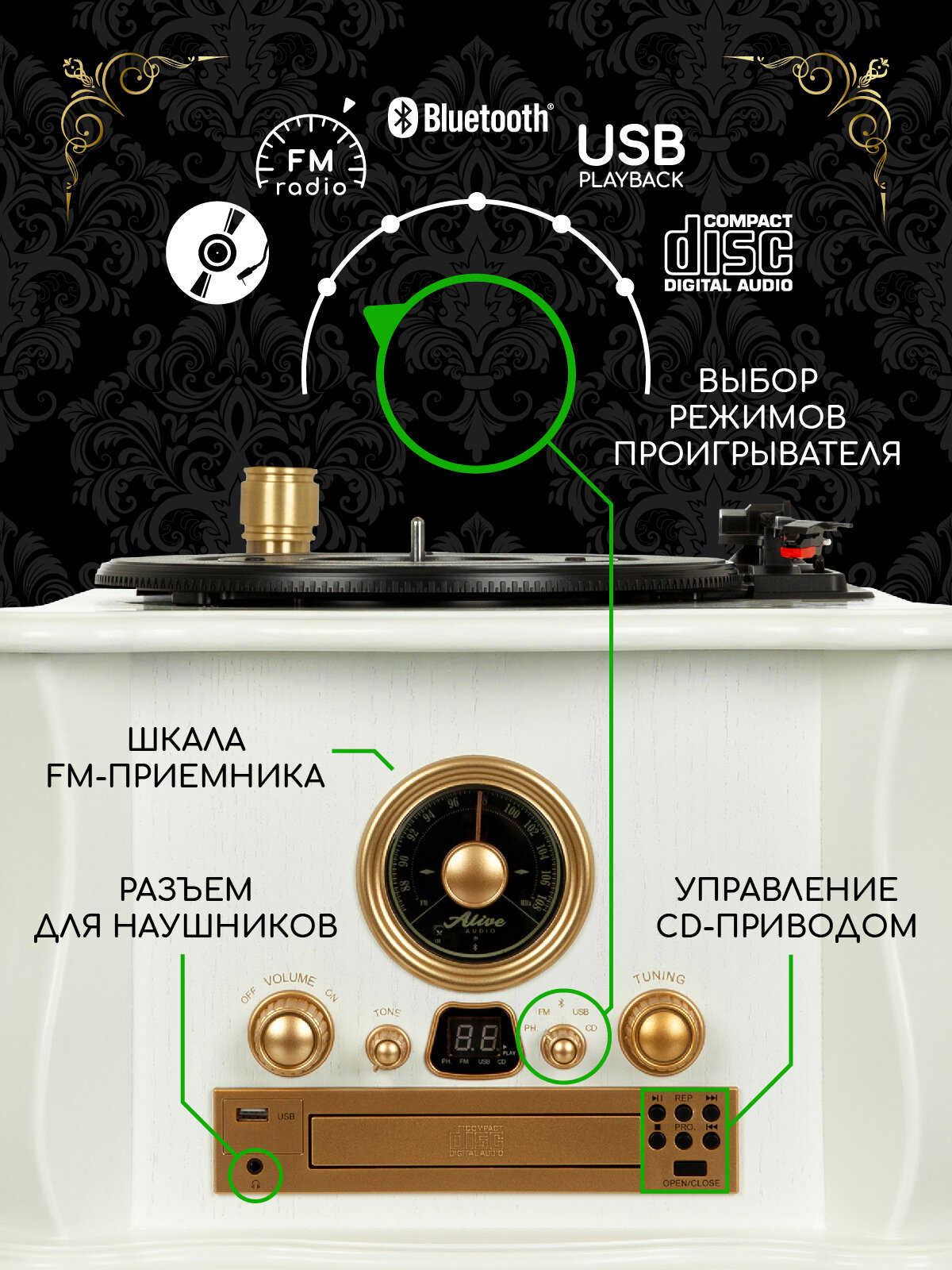 Виниловый проигрыватель Alive Audio Gramophone White (набор 2в1) интересное: