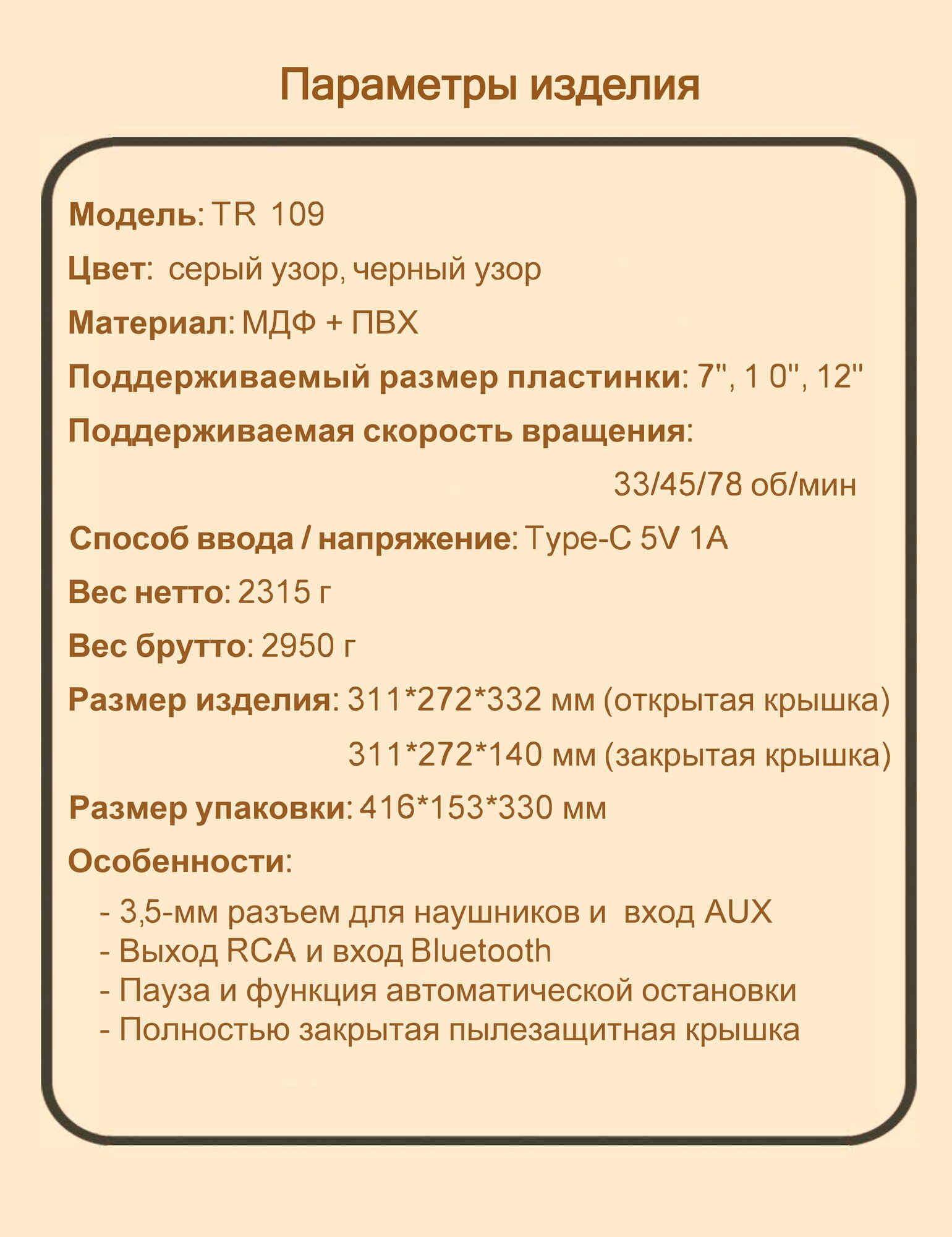 Проигрыватель виниловых пластинок с поддержкой Bluetooth Vinillo TR-109 интересное: