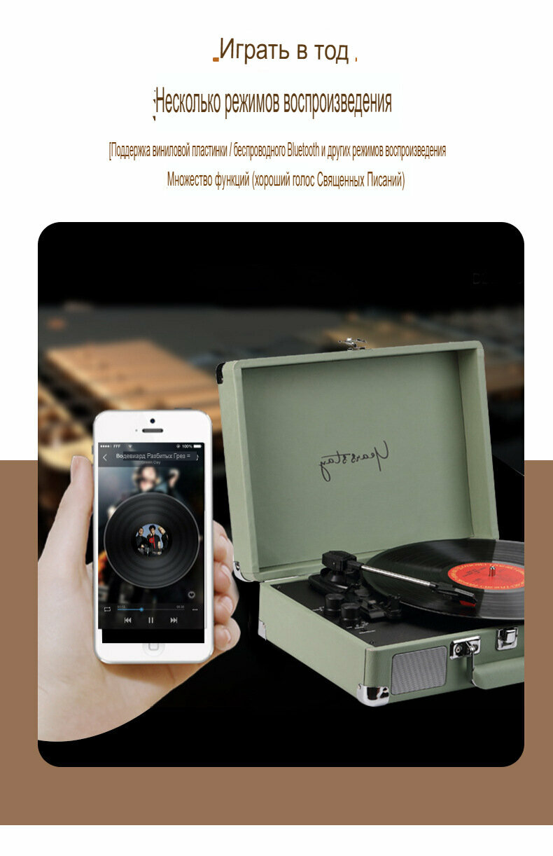Проигрыватель виниловых пластинок в ретро стиле, с Bluetooth интересное: