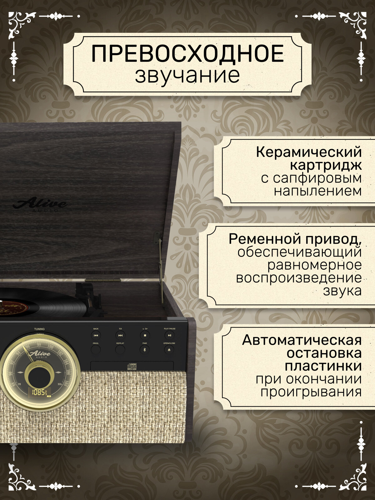 Ниже Вы можете прочитать отзывы на Виниловый проигрыватель Alive Audio Great Gatsby Dark Wood (CD, FM-радио, кассетник, Bluetooth, встр, ознакомится с подробными характеристиками, посмотреть интересные обзоры и фотографии на Виниловый проигрыватель Alive Audio Great Gatsby Dark Wood (CD, FM-радио, кассетник, Bluetooth, встр.