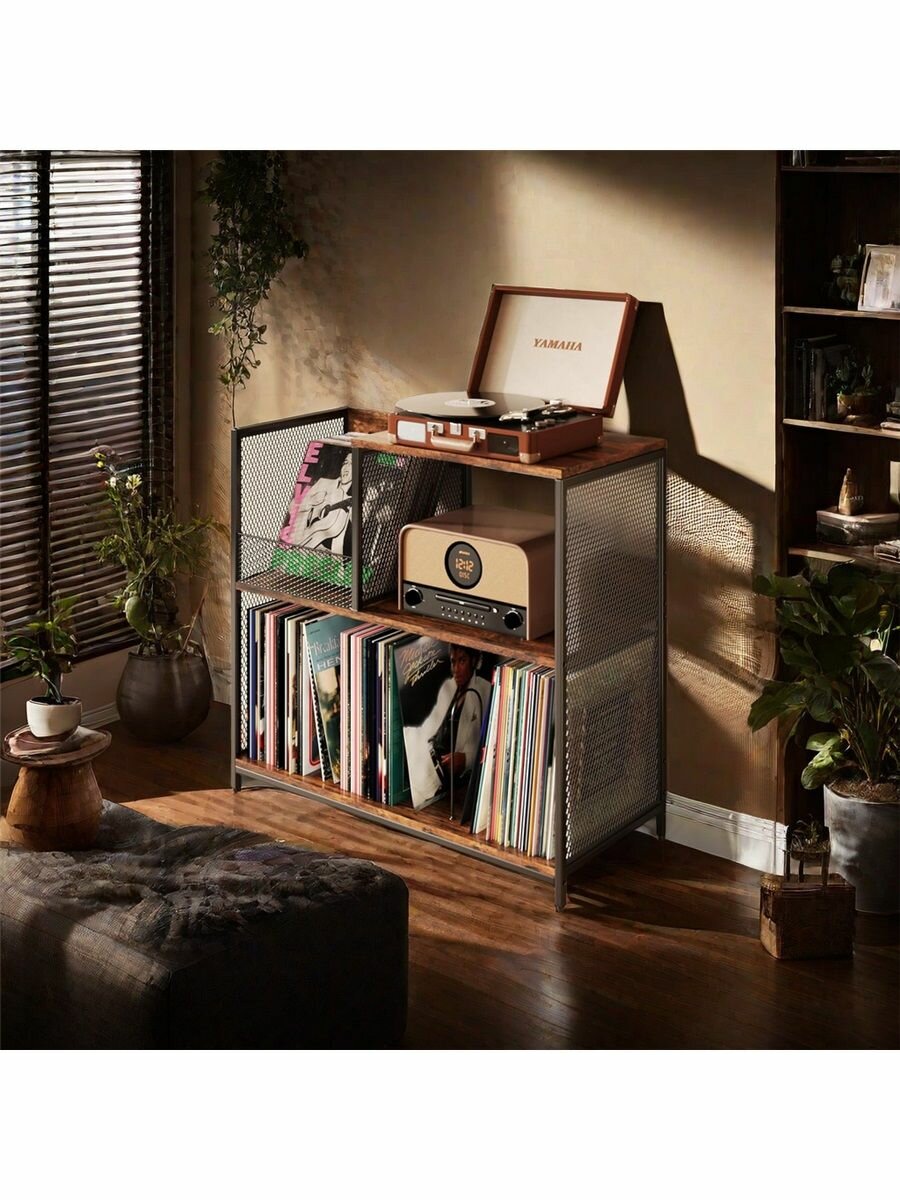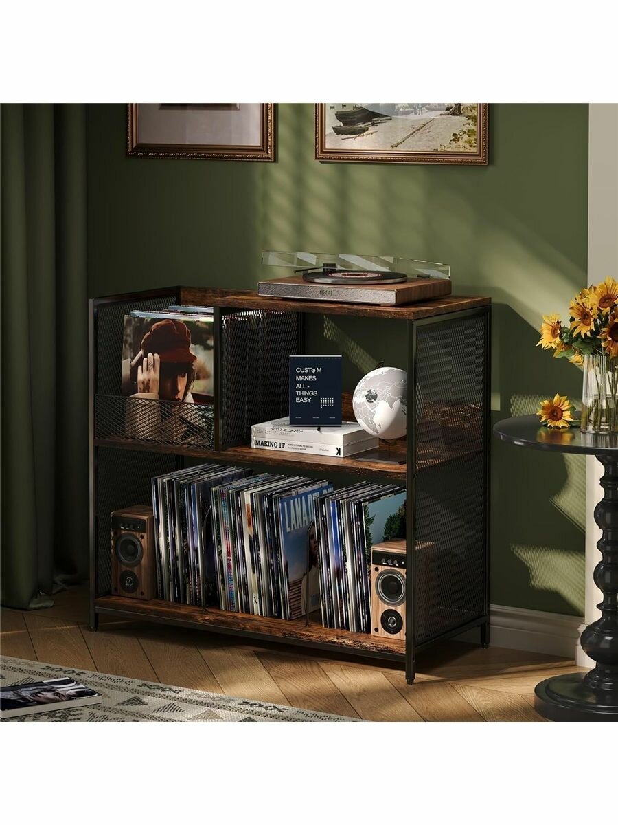 Шкаф YBY, для виниловых дисков, металл и дерево, черный/хаки, 7,5 кг интересное: