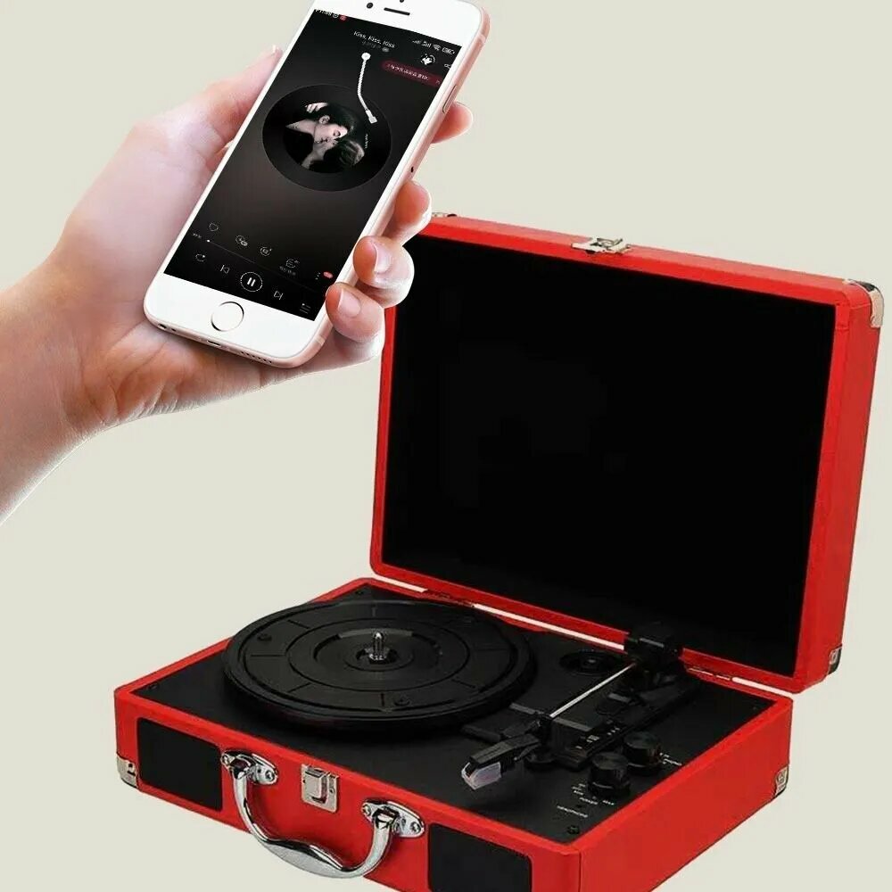 Виниловый проигрыватель Caro Black, Bluetooth, дерево, цвет красный интересное: