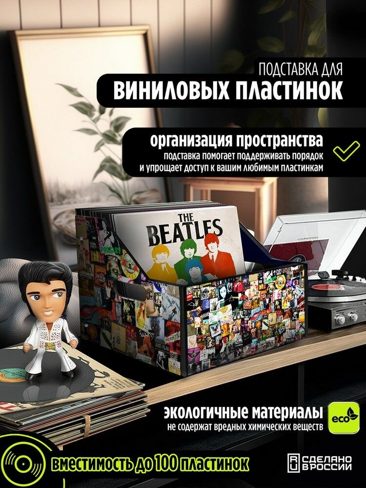 Купить Подставка (ящик, органайзер) для хранения виниловых пластинок с принтом "музыка рок группы (логотипы, знаменитости, метал группы) - 30325280"