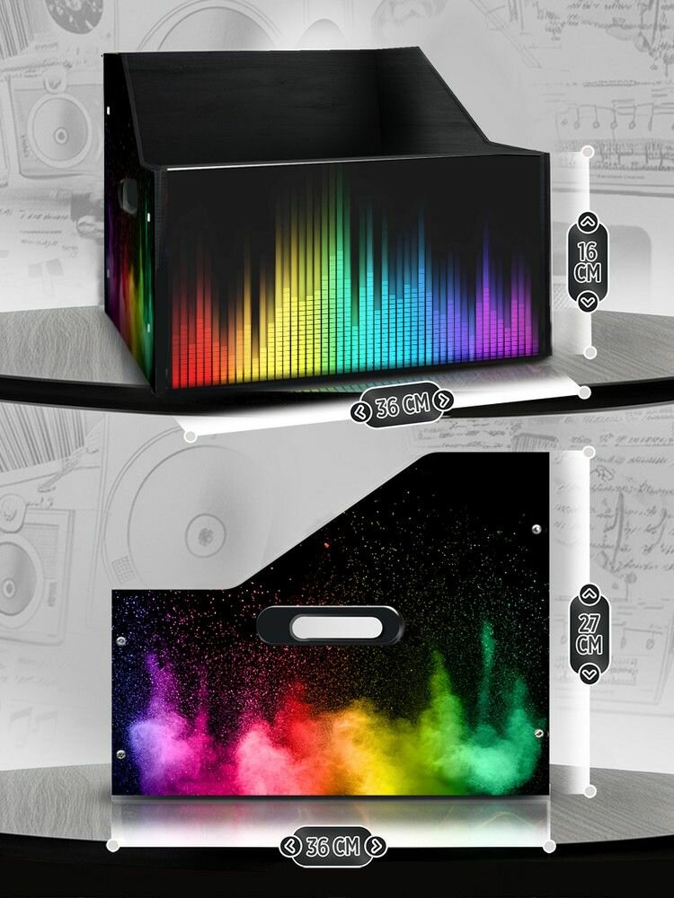 Купить Подставка (ящик, органайзер) для хранения виниловых пластинок с принтом "музыка эквалайзер (виниловые пластинки, звуковая дорожка, краски) - 30325272"