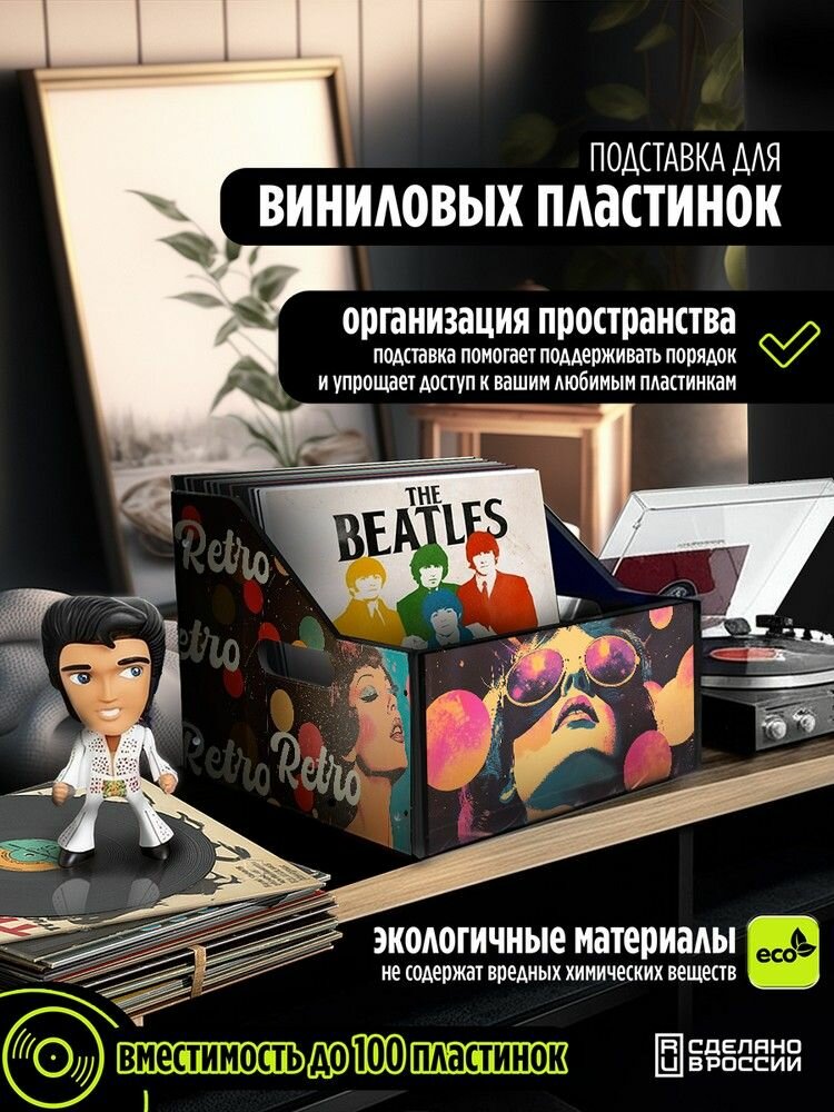 Подставка (ящик, органайзер) для хранения виниловых пластинок с принтом "музыка винил - 30325271"
