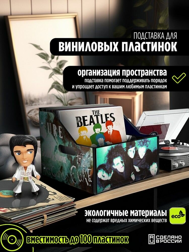 СохранитьПодставка (ящик, органайзер) для хранения виниловых пластинок с принтом "музыка The Cure (кьюр, поп, рок, готик, Робер Смит) - 4250313" интересное: