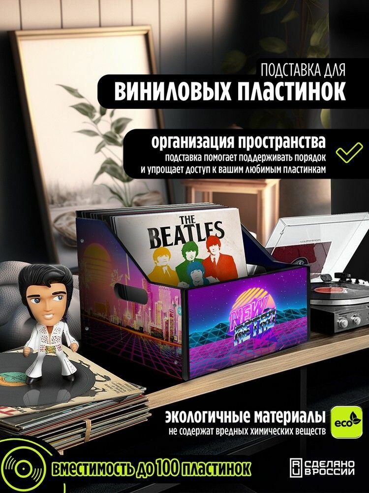 СохранитьПодставка (ящик, органайзер) для хранения виниловых пластинок с принтом "музыка ретровейв (синтвейв, закат, винтаж, ретро, драйв) - 30325274" интересное: