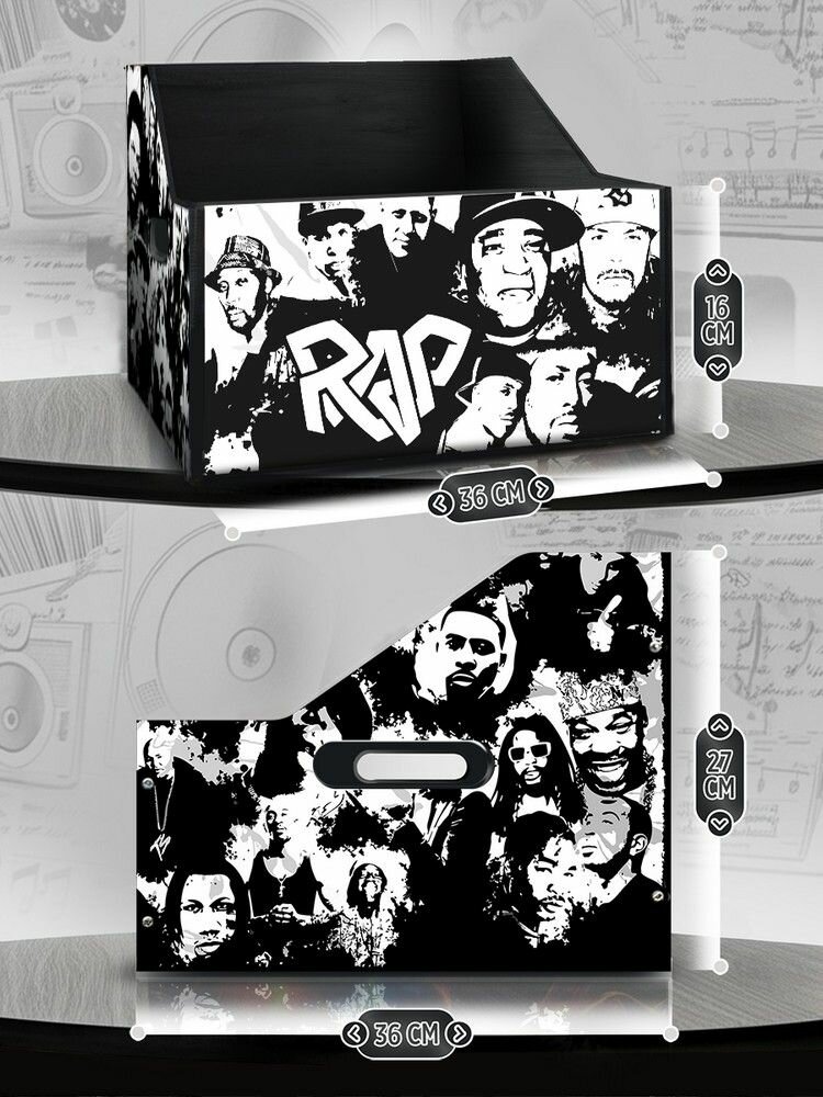 Купить Подставка (ящик, органайзер) для хранения виниловых пластинок с принтом "музыка Рэп (хип-хоп, граффити, легенды) - 52503247"
