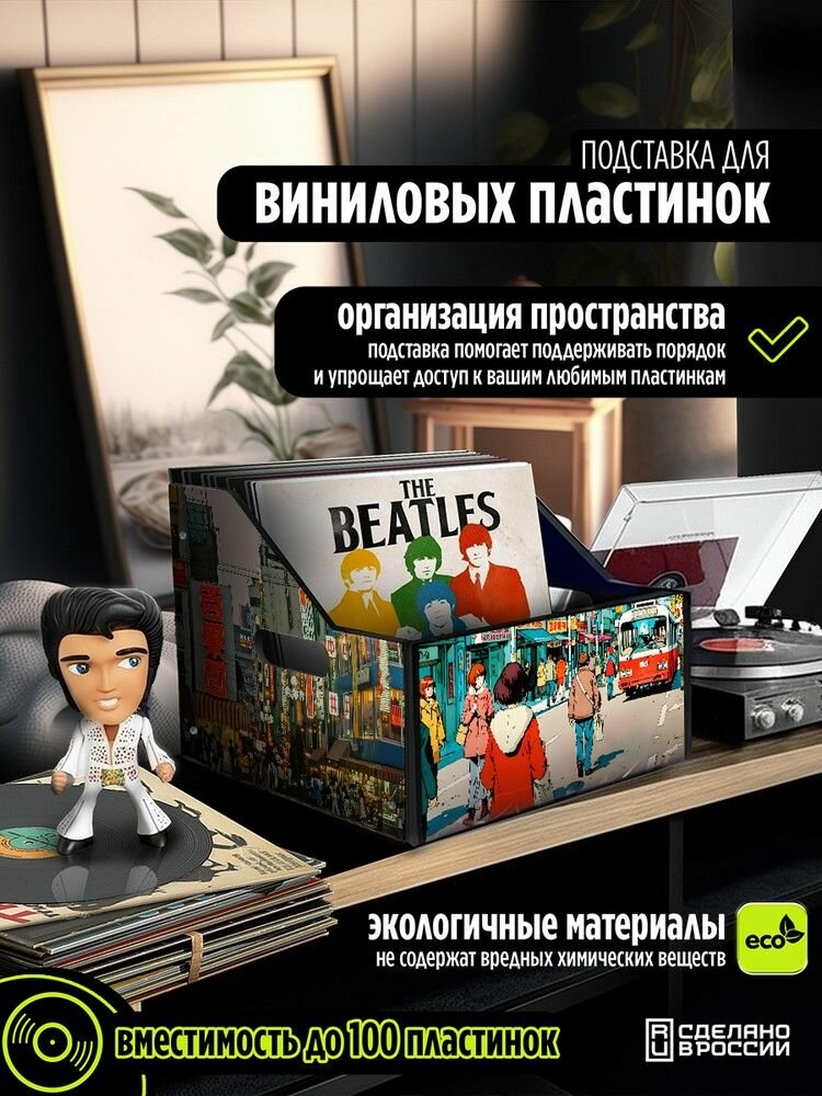 Подставка (ящик, органайзер) для хранения виниловых пластинок с принтом "Аниме Город (Япония, Азия, ретро, виниловая пластинка) - 62503404" интересное: