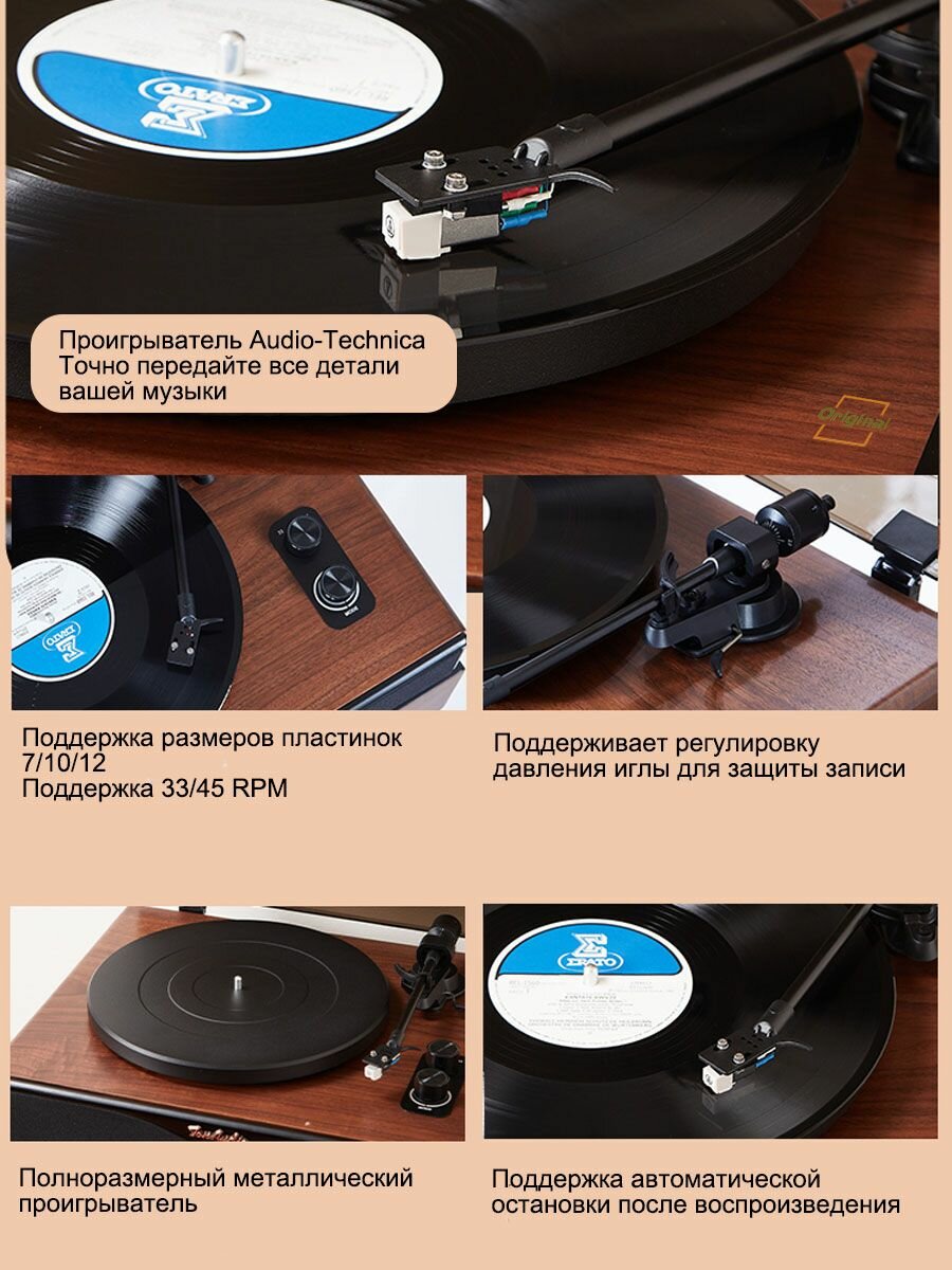 Виниловый проигрыватель, Bluetooth, USB, RCA, встроенные динамики, высокая мощность, 30Вт интересное: