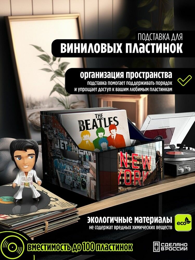 СохранитьПодставка (ящик, органайзер) для хранения виниловых пластинок с принтом "Эстетика Город (Нью Йорк, сити, граффити, Америка, виниловая пластинка) - 62503403" интересное: