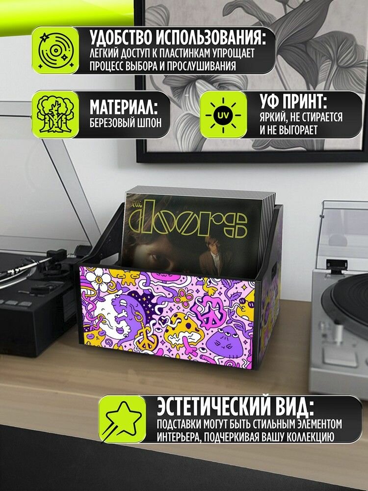 Подставка (ящик, органайзер) для хранения виниловых пластинок с принтом "эстетика Психоделика (сюр, мультяшки, кислота, символы, кот, кролик) - 52504010"