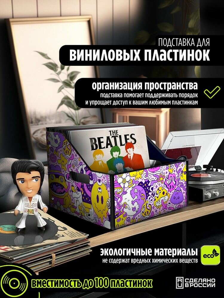 Купить Подставка (ящик, органайзер) для хранения виниловых пластинок с принтом "эстетика Психоделика (сюр, грибы, жаба, пацифик, символы) - 52504008"